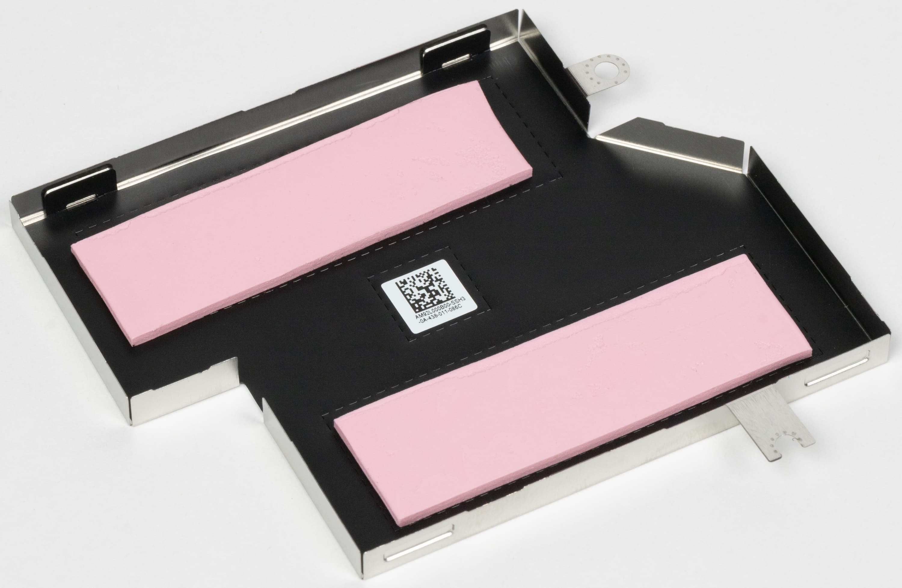 Чтобы получить доступ к оперативной памяти, нужно сначала снять жестяную накладку, на изнанке которой имеются термопрокладки.