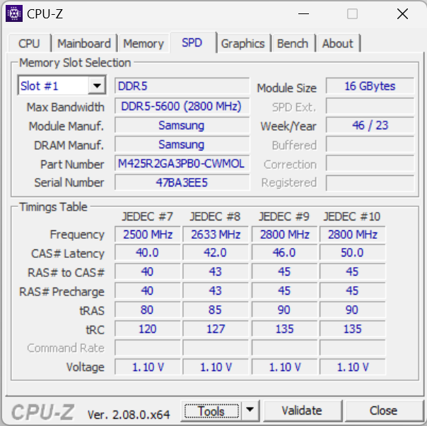 — 32 ГБ DDR5-4800 (2 × 16 ГБ Samsung M425R2GA3BB0)