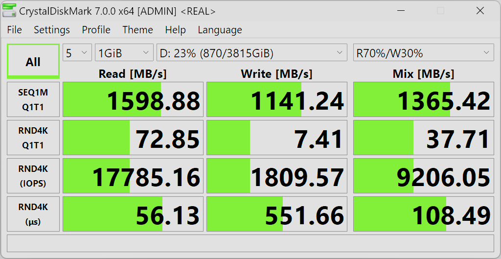 Конечно, 3000 МБ/с получить не удается, но после скоростей USB3 Gen1 и даже USB3 Gen2 показанные 1600 МБ/с при чтении выглядят очень впечатляюще.