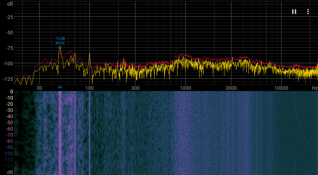 Если ноутбук не нагружать совсем, то его система охлаждения работает в активном режиме, вентиляторы вращаются, но на рабочем для пользователя расстоянии уровень шума практически не превышает фонового значения, то есть пользователь этот шум не слышит. И даже в случае большой нагрузки шум от системы охлаждения умеренный. При этом характер шума ровный и не раздражает. Спектрограмма, полученная при максимальной нагрузке на CPU, достаточно ровная, и в диапазоне частот, где звуки могут вызывать особенное раздражение, выраженных пиков нет: