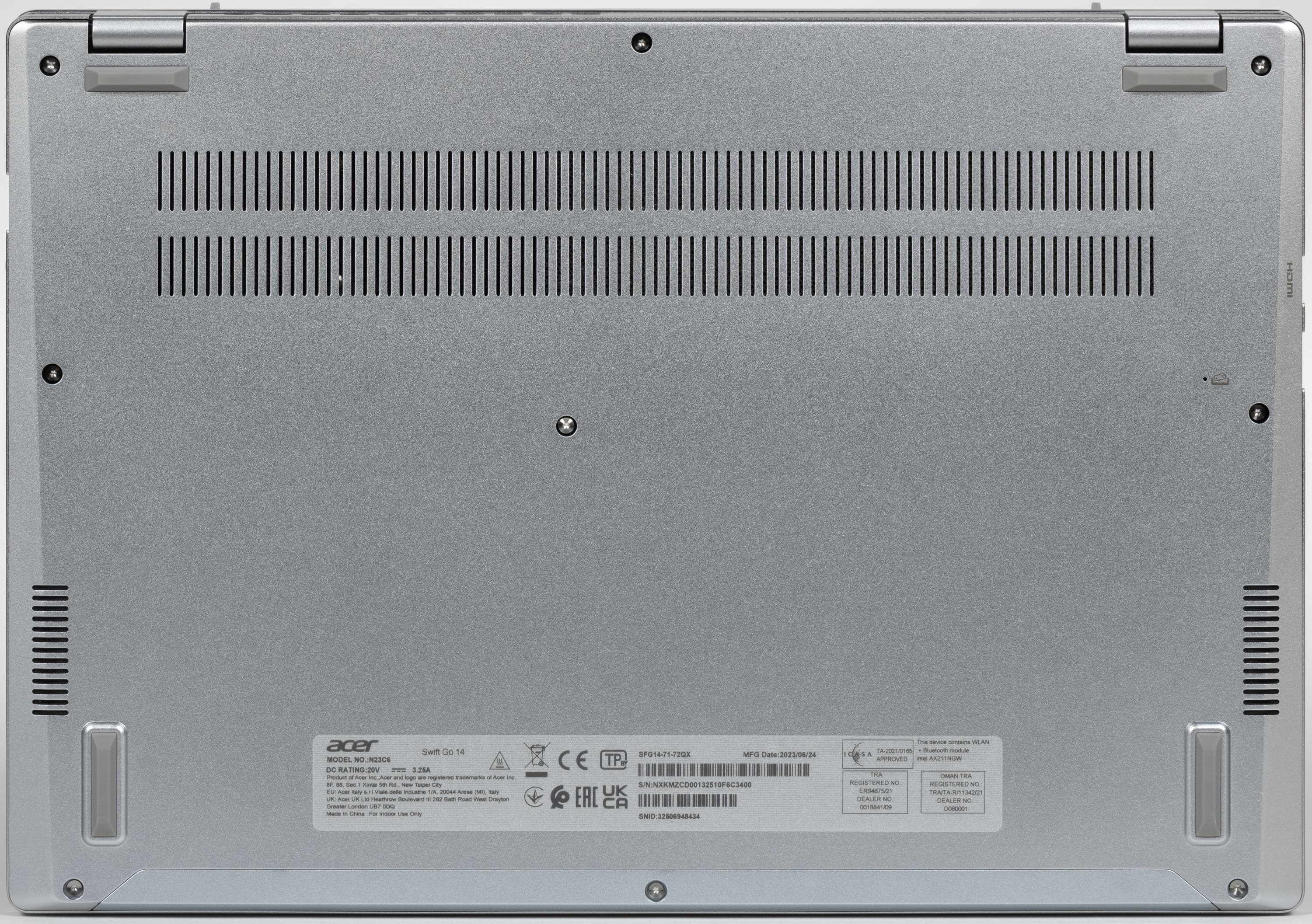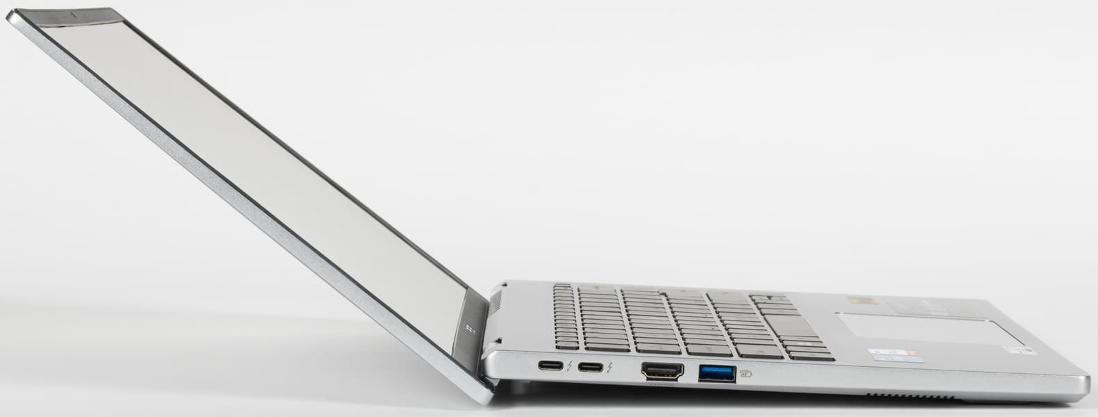 У Acer Swift Go 14 довольно тонкий металлический корпус без сужения от задней части корпуса к передней (толщина везде одинаковая).
