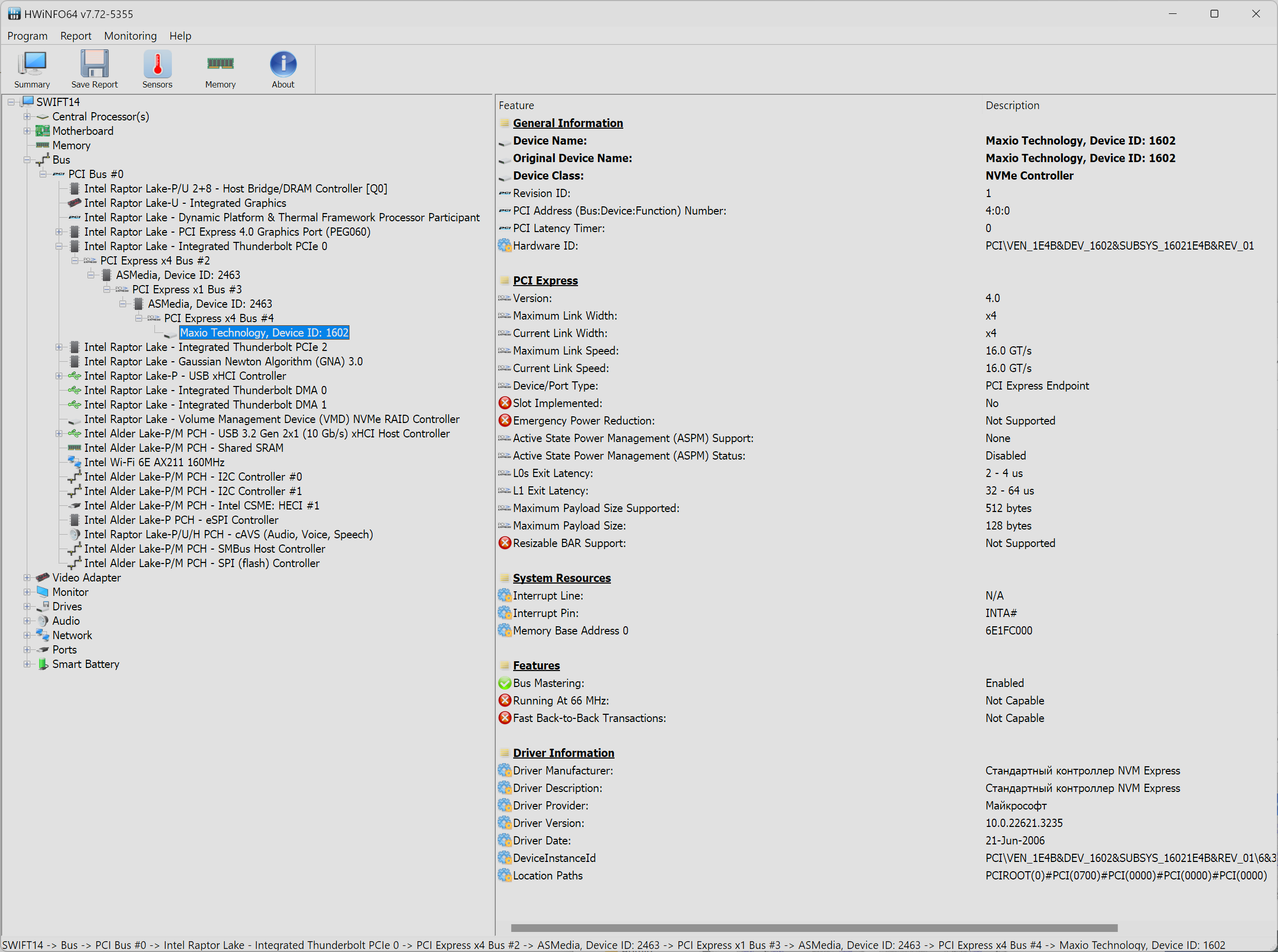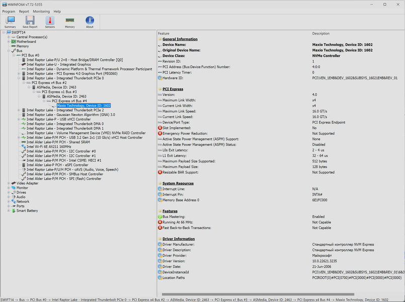 (ASMedia по имени контроллера) в порте Thunderbolt 4