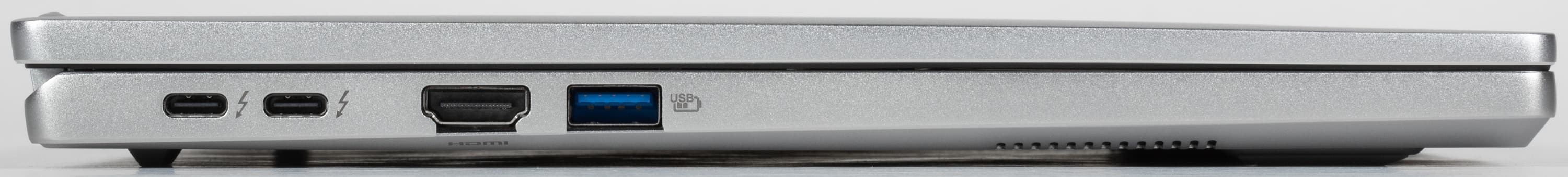 Слева помещаются два порта USB4/Thunderbolt 4 (Type-С), стандартный видеовыход HDMI и порт USB Type-A. Оба Thunderbolt 4 поддерживают вывод видео по DisplayPort и питание внешних устройств (PowerDelivery).