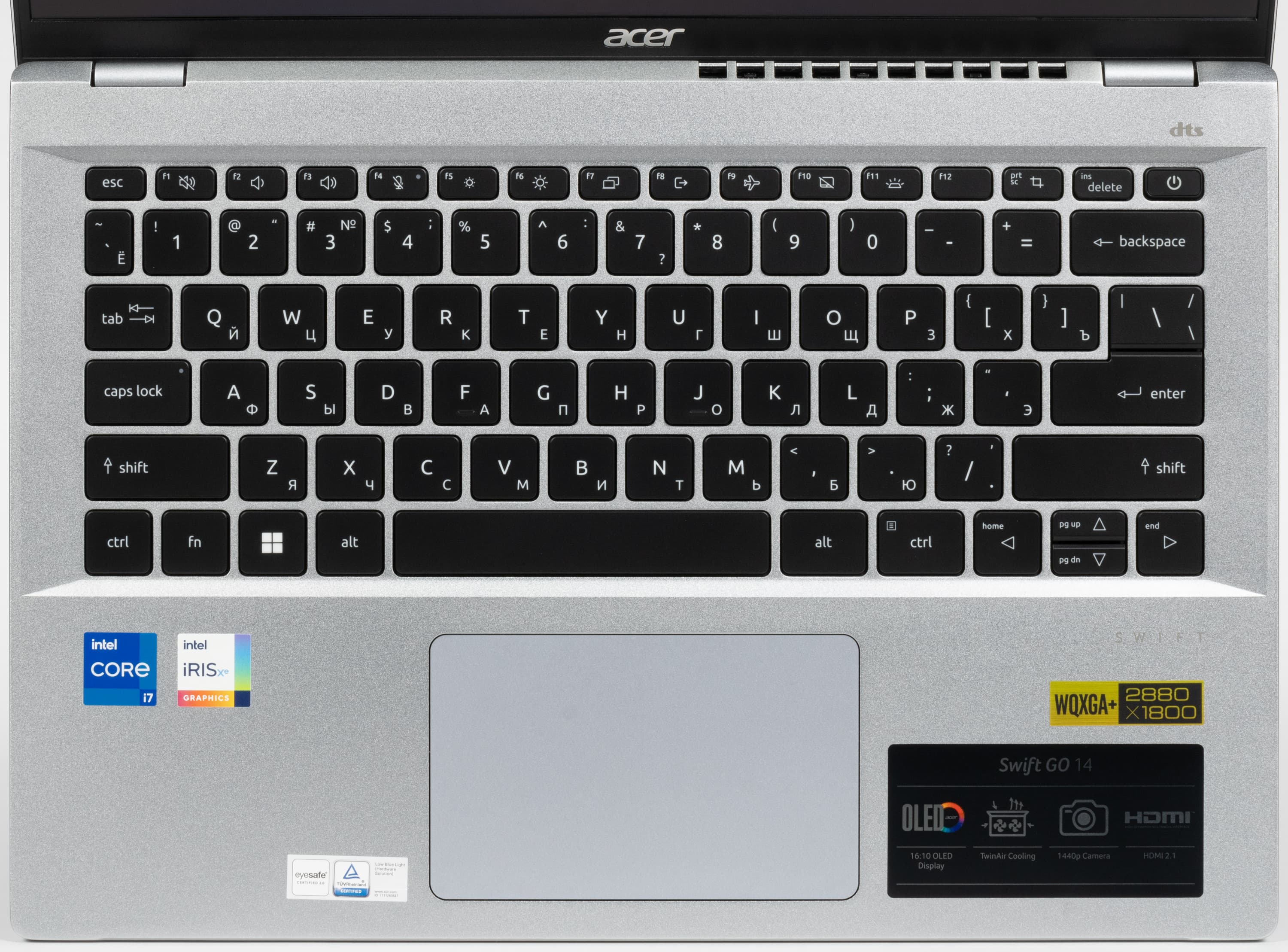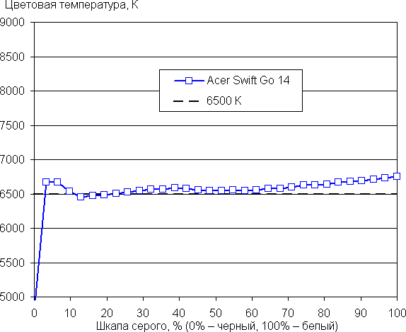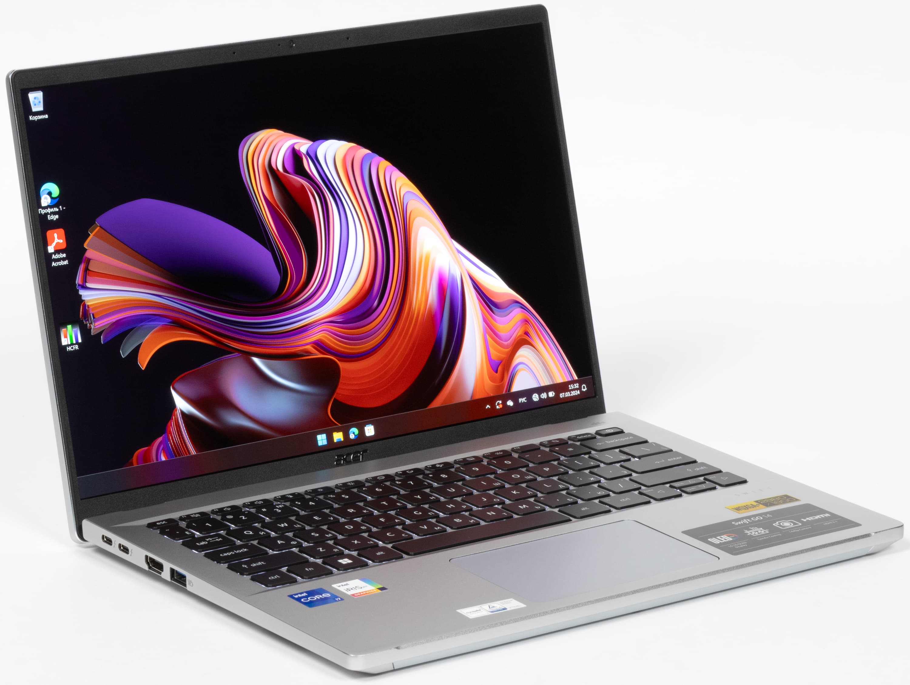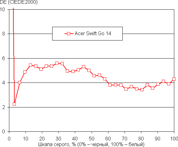 В Acer Swift Go 14 используется 14-дюймовая OLED-матрица с разрешением 2880×1800 (отчет edid-decode). Для нее обещаны соответствие критериям VESA DisplayHDR 500 True Black, цветовой охват 100% пространства DCI-P3 и время отклика менее 0,2 мс.