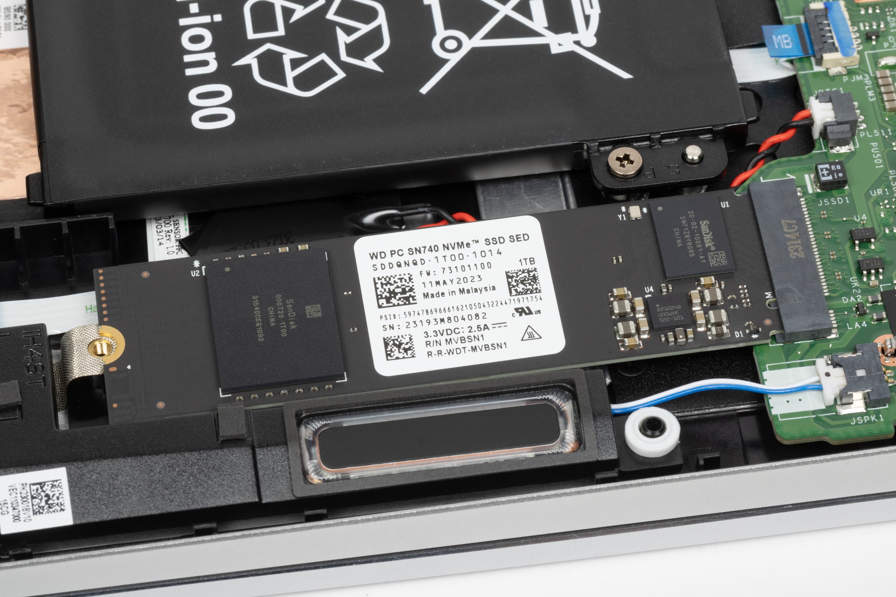 Системный накопитель установлен в слот M.2 2280 (интерфейс PCIe 4.0 ×4) и накрыт металлической теплосъемной пластиной.