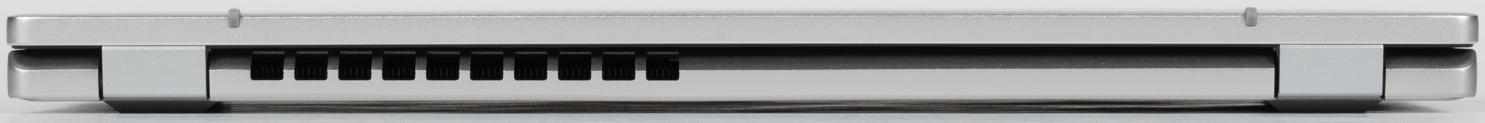 Сзади заметно, что между петлей крышки и основанием имеются щели для выброса нагретого воздуха.