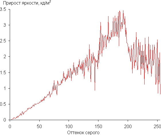 Видно, что на максимальной и средней яркости скважность модуляции низкая, в итоге видимого мерцания нет. Однако при сильном понижении яркости появляется модуляция с высокой скважностью, ее наличие уже можно увидеть в тесте на присутствие стробоскопического эффекта или на некоторых изображениях просто при быстром движении глаз. В зависимости от индивидуальной чувствительности такое мерцание может вызывать повышенную утомляемость. Впрочем, фаза модуляции различается по зонам, поэтому негативный эффект от мерцания снижен, к тому же в большинстве случаев ноутбук можно эксплуатировать с достаточно высоким уровнем яркости, когда мерцания еще нет.