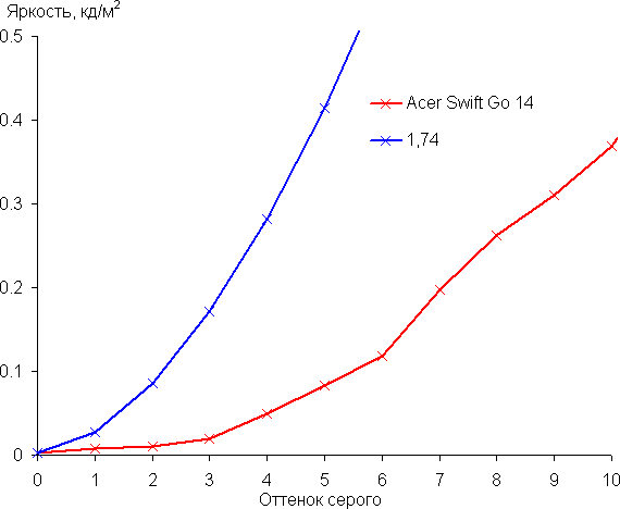 Вернемся к экрану тестируемого ноутбука. Если настройка яркости равна 0%, то яркость снижается до 21 кд/м². В полной темноте яркость его экрана получится понизить до комфортного уровня.