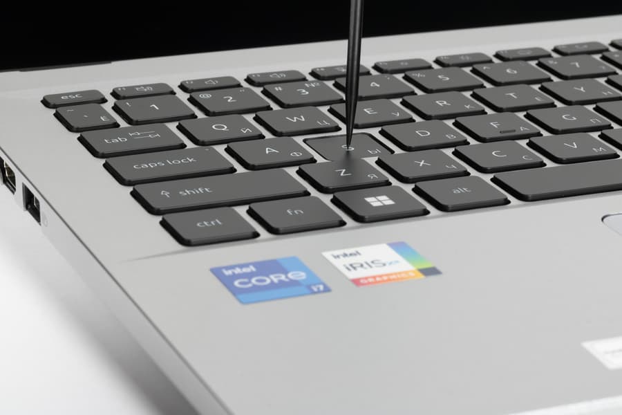 Днище крепится к корпусу ноутбука при помощи девяти винтов с шлицем Torx. Пломбировка и заклейка стикерами отсутствует.