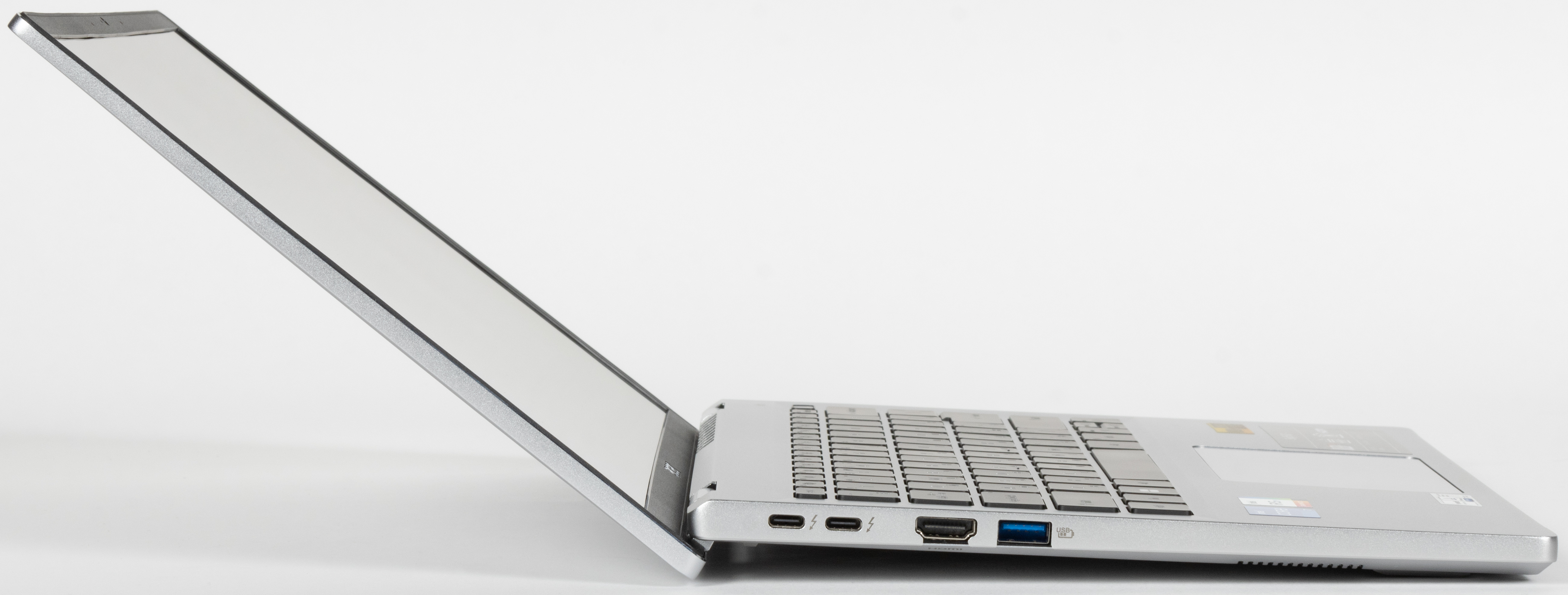 Отклонение крышки при раскрытии достигает 132°. Acer Swift Go 14 обладает 14-дюймовым экраном и поэтому весьма компактен даже по сравнению с 16-дюймовыми моделями. Соотношение сторон 16:10 вместо традиционных 16:9 увеличивает размер дисплея по вертикали и делает машину визуально более габаритной, но и обеспечивает более удобную работу с офисными приложениями. Вес 1,28 кг представляется небольшим по меркам более габаритных портативных машин.