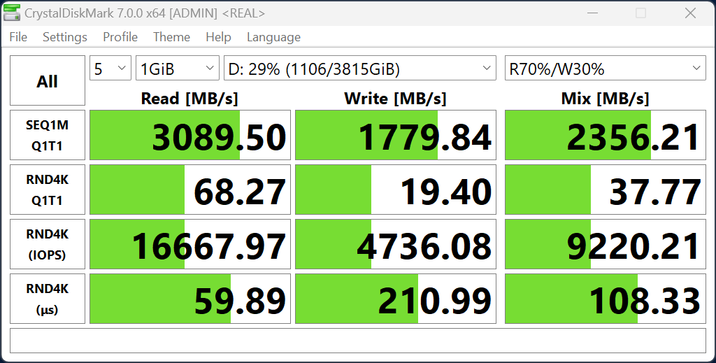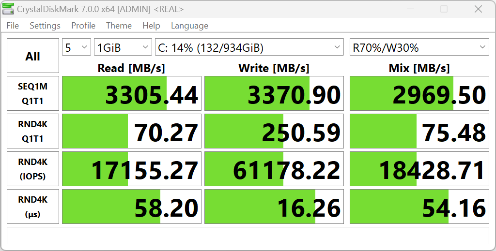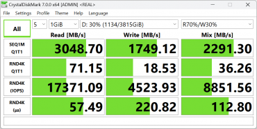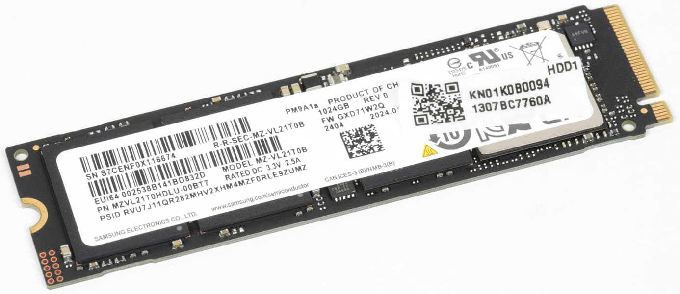 Системным хранилищем программ и данных является NVMe-накопитель Samsung PM9A1a емкостью 1 ТБ с интерфейсом подключения PCIe 4.0 ×4. Второго слота M.2 нет.