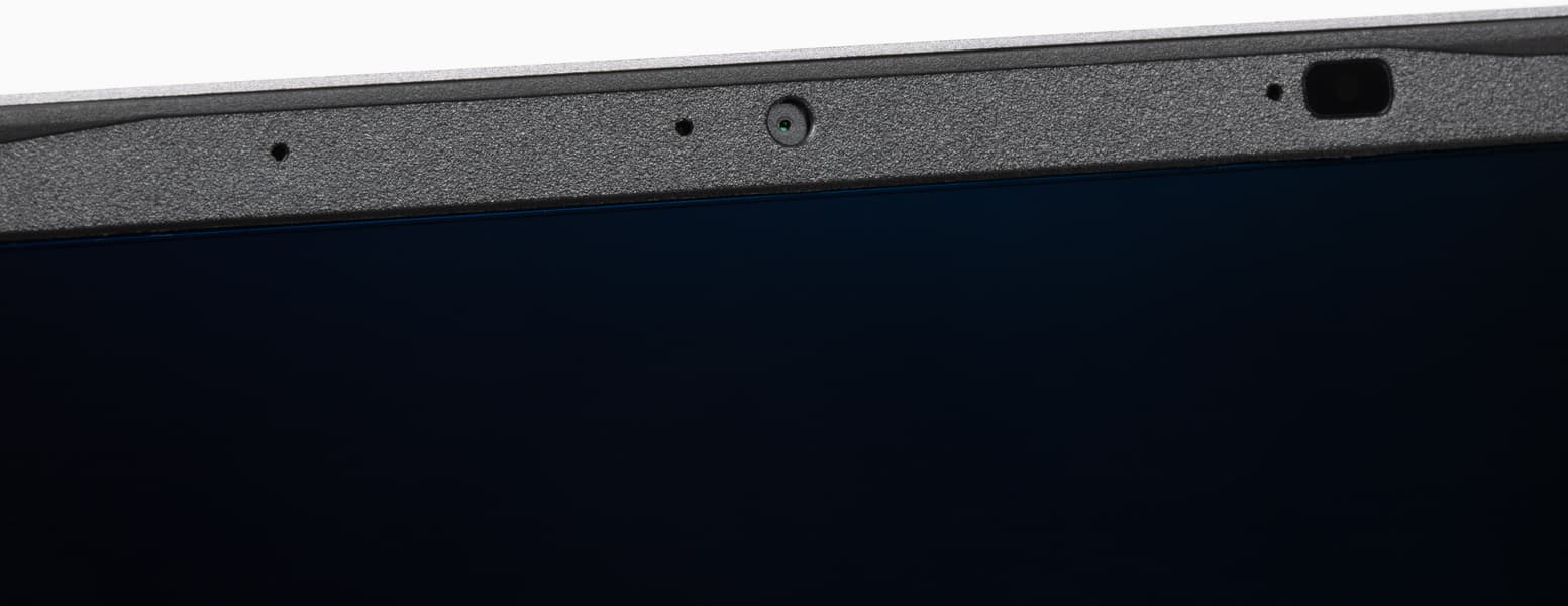 В верхнюю часть рамки встроена миниатюрная веб-камера для видеоконференций. Металлической шторкой она не оснащена.