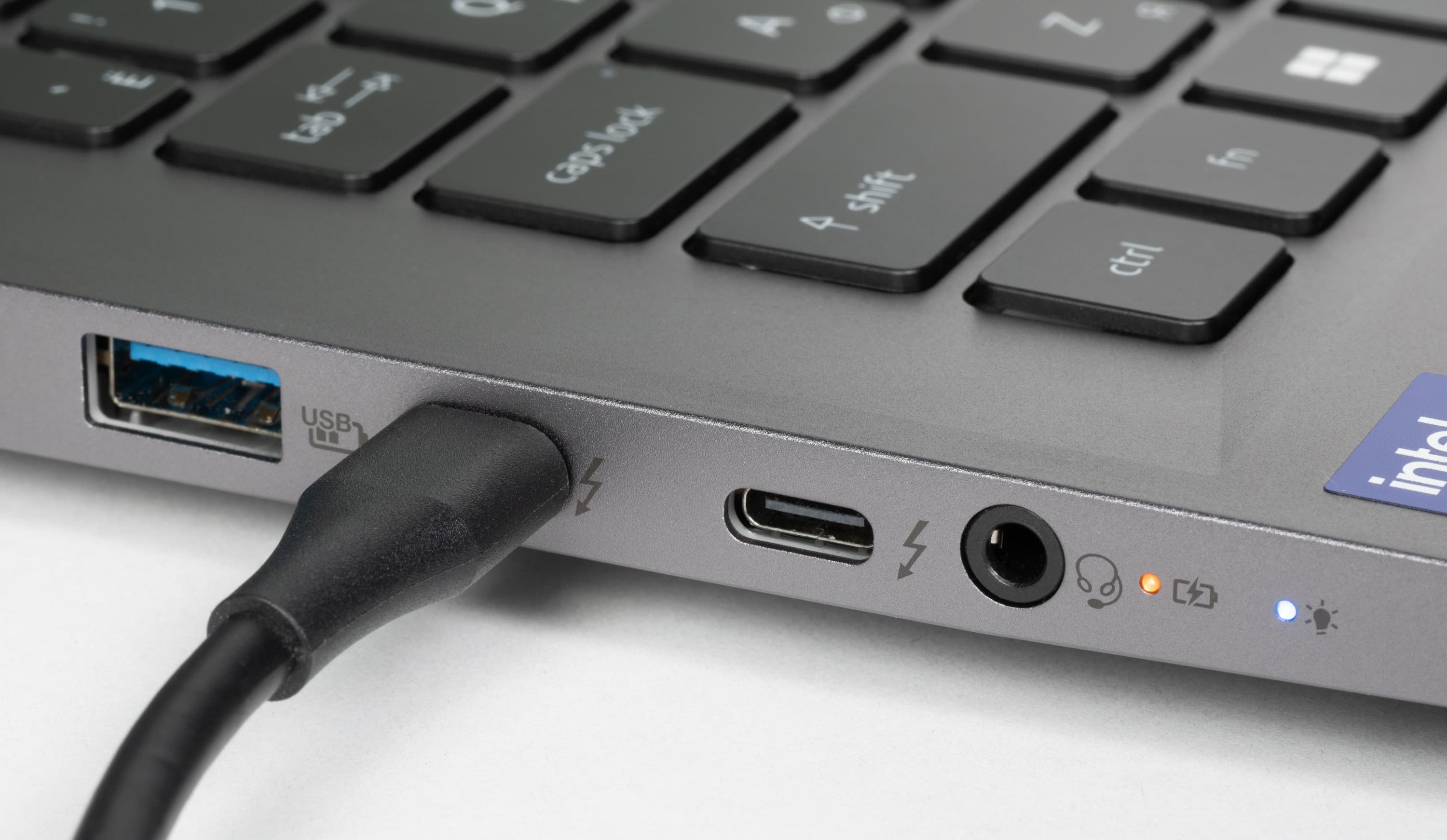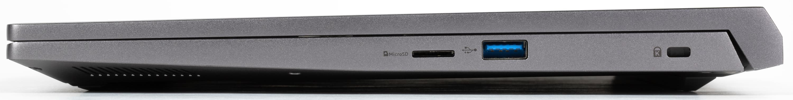 Справа расположены слот картовода для microSD, порт USB 3.2 Gen1 Type-A и кенсингтонский замок.