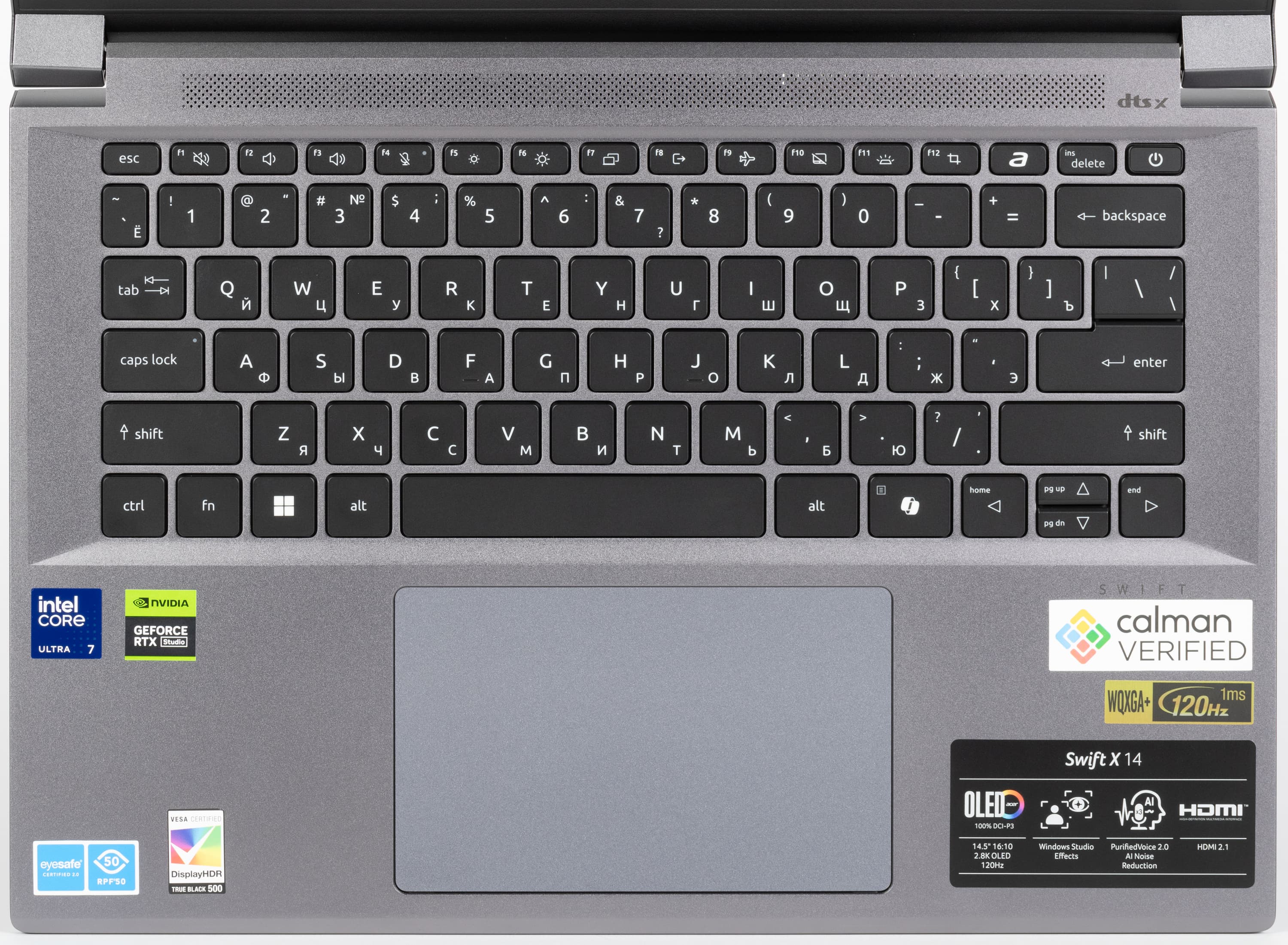 | Экран | OLED 14,5 дюйма, 2880×1800 (16:10), 120 Гц, охват DCI-P3 100%, сертификация VESA DisplayHDR 500; макс. яркость 370 кд/м²; задержка вывода 5 мс | |