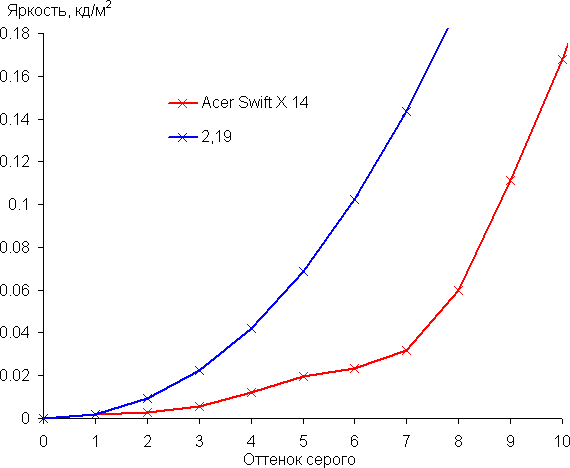 И в этом, новом тесте методики 2024 года Acer Swift X 14 не смог опередить конкурентов. Далее то же на диаграммах.