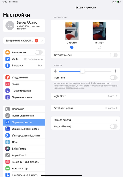 Разумеется, в этом устройстве Apple есть уже привычная функция Night Shift, которая ночью делает картинку теплее (насколько теплее — указывает пользователь; по факту от 6390 до 2830 К). В принципе, яркий свет может приводить к нарушению суточного (циркадного) ритма (см. статью про iPad Pro с дисплеем 9,7 дюйма), но все решается снижением яркости до низкого, но еще комфортного уровня, а искажать цветовой баланс, уменьшая вклад синего, нет абсолютно никакого смысла.