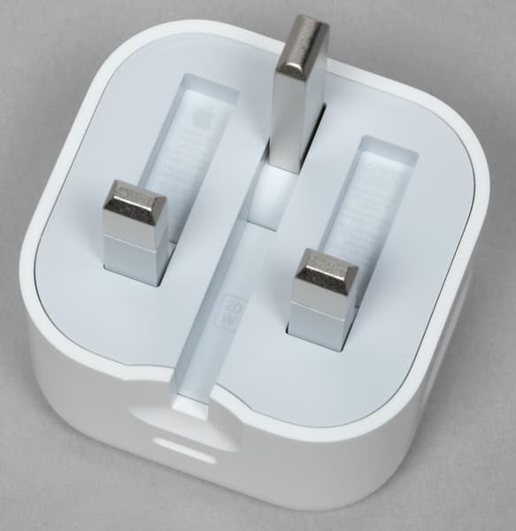 Единственный нюанс: поскольку данный экземпляр ввезен не официально, вилка зарядки здесь трехштырьковая. И посмотрите, как интересно она сделана: вилка складная. Нажимаем на центральный штырек — и все выступающие элементы убираются внутрь корпуса зарядки. Очень удобно!