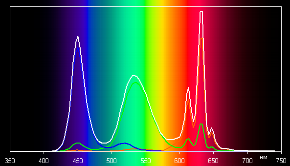 Отметим, что координаты первичных цветов практически в точности совпали с теми, что прописано для стандарта DCI-P3. Смотрим на спектры в случае тестовых изображений с профилем Display P3: