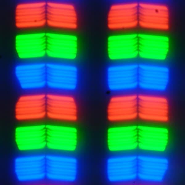 В данном планшете используется матрица типа IPS. Микрофотографии демонстрируют типичную для IPS структуру субпикселей: