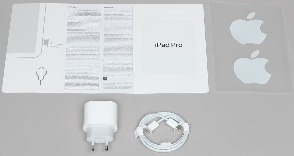 Дизайн коробки выполнен в традиционном для серии iPad Pro дизайне: почти всю внешнюю поверхность бокса заполняет изображение планшета со включенным экраном.