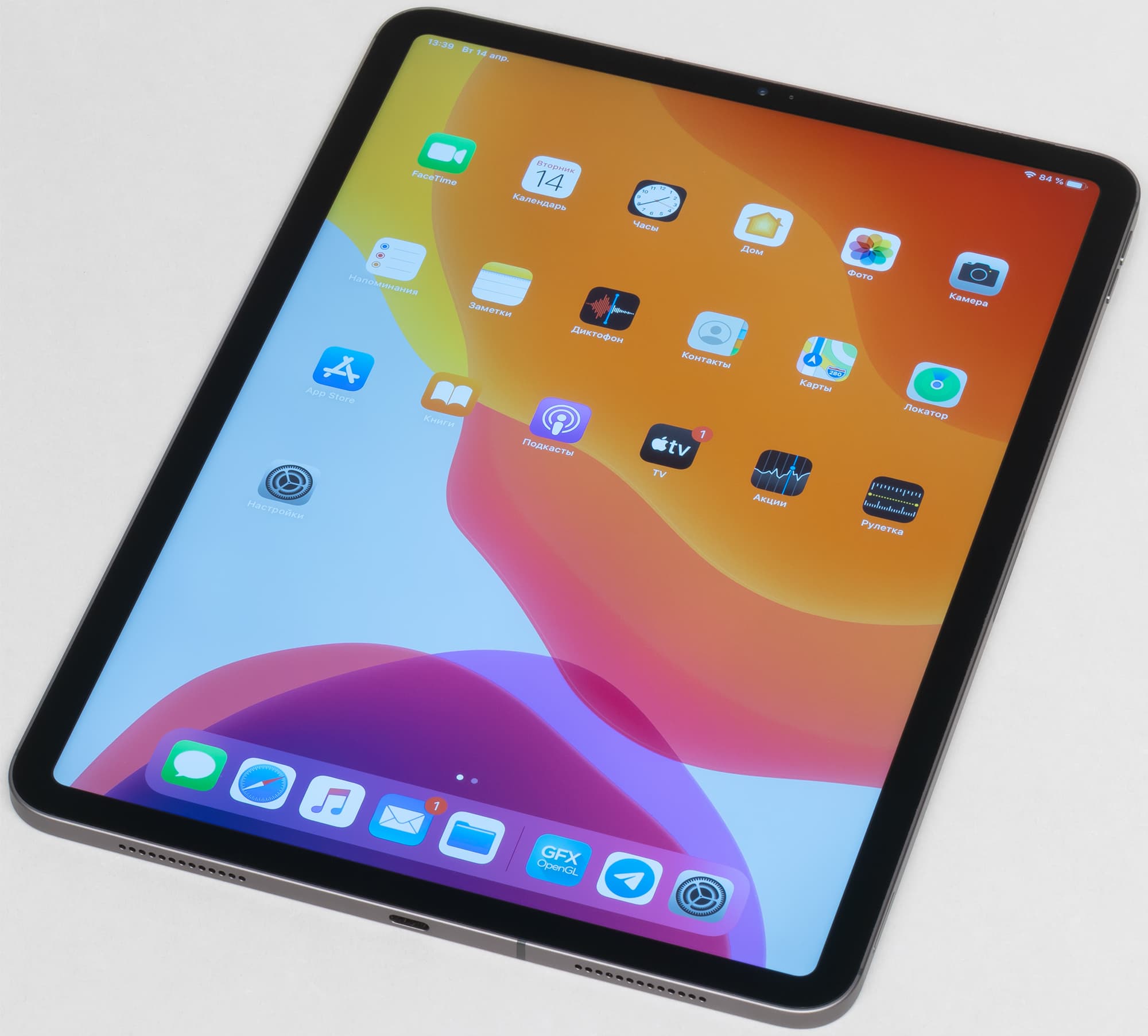 Экран у Apple iPad Pro 11″ (2020) существенно темнее (яркость по фотографиям 51 против 108 у Nexus 7). Отметим, что производитель заявляет об коэффициенте отражения 1,8%. Двоение отраженных объектов в экране Apple iPad Pro 11″ (2020) очень слабое, это свидетельствует о том, что между слоями экрана (между внешним стеклом и поверхностью ЖК-матрицы) нет воздушного промежутка (экран типа OGS — One Glass Solution). За счет меньшего числа границ (типа стекло/воздух) с сильно различающимися коэффициентами преломления такие экраны лучше смотрятся в условиях интенсивной внешней засветки, но вот их ремонт в случае потрескавшегося внешнего стекла обходится гораздо дороже, так как менять приходится экран целиком. На внешней поверхности экрана есть специальное олеофобное (жироотталкивающее) покрытие (эффективное, немного лучше, чем у Nexus 7), поэтому следы от пальцев удаляются легче, а появляются с меньшей скоростью, чем в случае обычного стекла.