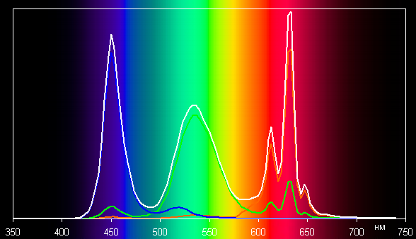 По все видимости, в этом экране используются светодиоды с синим излучателем и зеленым и красным люминофором (обычно — синий излучатель и желтый люминофор), что в сочетании со специальными светофильтрами матрицы и позволяет получить широкий цветовой охват. Да, и в красном люминофоре, видимо, используются так называемые квантовые точки. Для потребительского устройства широкий цветовой охват является никак не достоинством, а существенным недостатком, поскольку в итоге цвета изображений — рисунков, фотографий и фильмов, — ориентированных на пространство sRGB (а таких подавляющее большинство), имеют неестественную насыщенность. Особенно это заметно на узнаваемых оттенках, например на оттенках кожи. Впрочем, в данном случае цветовой охват аккуратно корректируется до границ sRGB. В итоге визуально цвета имеют естественную насыщенность.