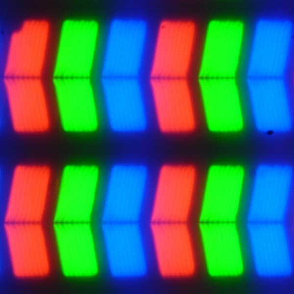 В данном планшете используется матрица типа IPS. Микрофотографии демонстрируют типичную для IPS структуру субпикселей: