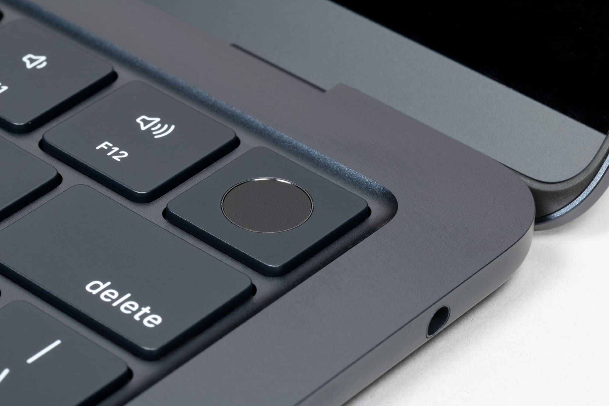 Сканер отпечатков пальцев размещен в правом дальнем углу клавиатуры, на нем нет никаких надписей, но есть круглое углубление, обозначающее активную зону. Также это и кнопка питания.