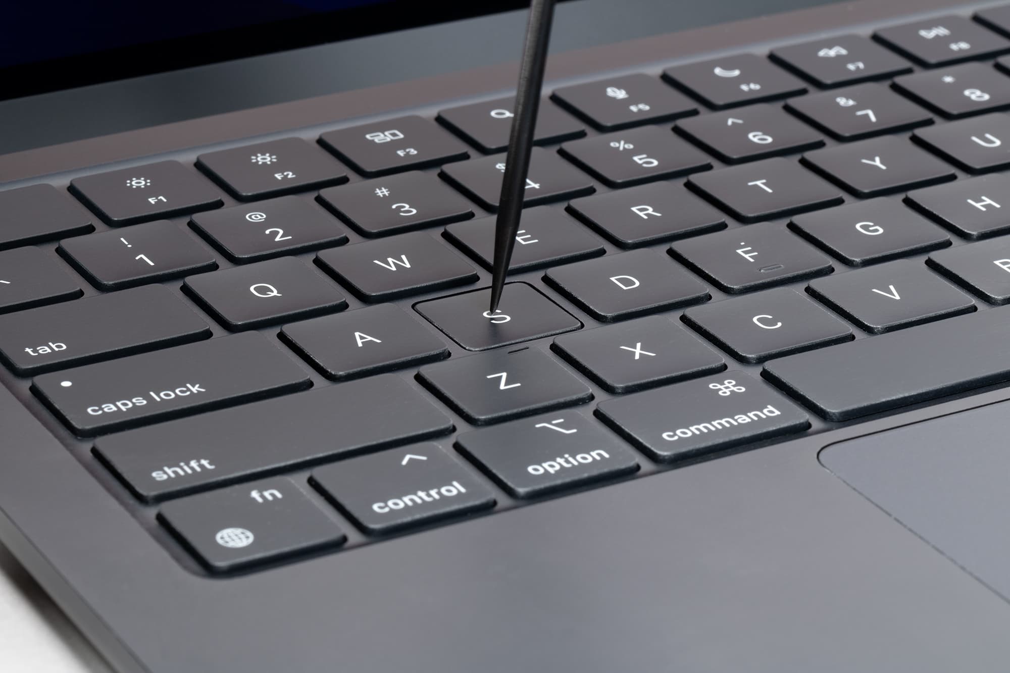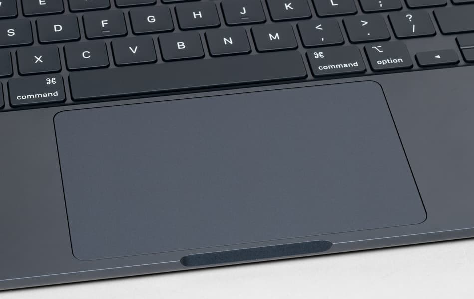 Клавиатура по меркам ультрапортативных устройств достаточно высокая, располагается в углублении цельнометаллического корпуса. Ход клавиш ощутимый, никаких принципиальных отличий по ощущениям от работы на MacBook Pro последних поколений здесь нет. Можем лишь повторить уже сказанное в обзорах моделей MacBook Pro, что нам очень нравится клавиатура Magic Keyboard, лишенная недостатков пресловутой «бабочки» в моделях 2016—2019 годов.