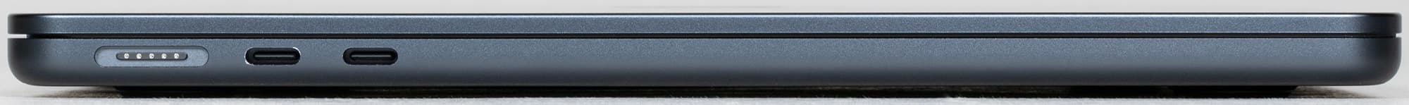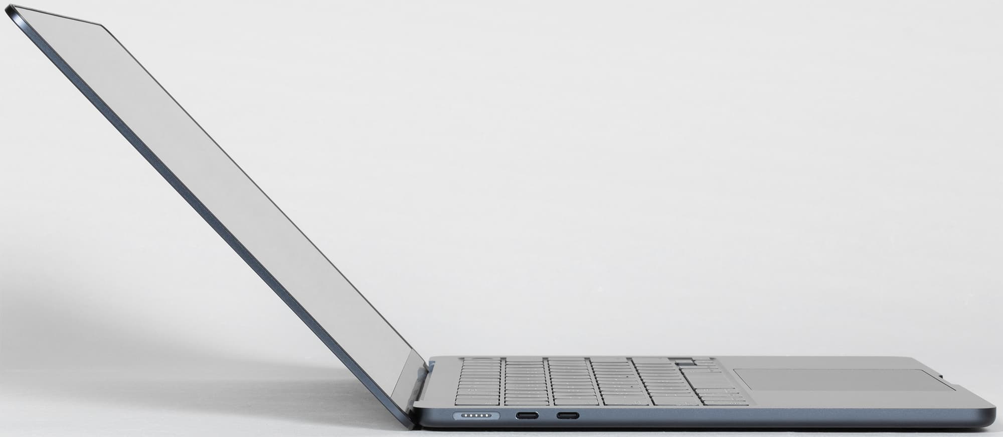 Оба разъема USB-C расположены слева, как и контакт MagSafe для зарядки, и это не очень удобно, потому что если, например, у вас розетка справа от ноутбука, кабель придется пускать вокруг всего устройства.