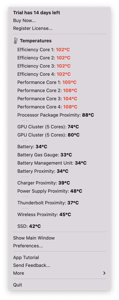 В целом, резюмируя тестирование производительности, можно сказать следующее: новый MacBook Air совершенно не предназначен для сколько-нибудь продолжительных нагрузок, под которыми он просто перегревается. В крайнем случае он способен на краткий рывок, и в таких случаях существенно обгоняет предшественника, а кое-где — даже MacBook Pro 14″, но у нас есть большие сомнения, что при обилии таких рывков он прослужит долго: все-таки нагрев CPU до 108-109 градусов выглядит опасным.