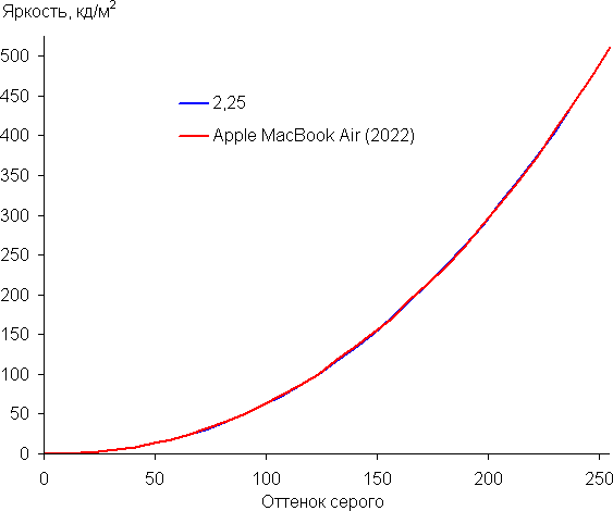 Контрастность (примерно в центре экрана) высокая — 1300:1. Время отклика при переходе черный-белый-черный равно 24 мс (14 мс вкл. + 10 мс выкл.), переход между полутонами серого 25% и 75% (по численному значению цвета) и обратно в сумме занимает 34 мс. Построенная по 32 точкам с равным интервалом по численному значению оттенка серого гамма-кривая не выявила завала ни в светах, ни в тенях. Показатель аппроксимирующей степенной функции равен 2,25, что близко к стандартному значению 2,2. При этом реальная гамма-кривая мало отклоняется от степенной зависимости: