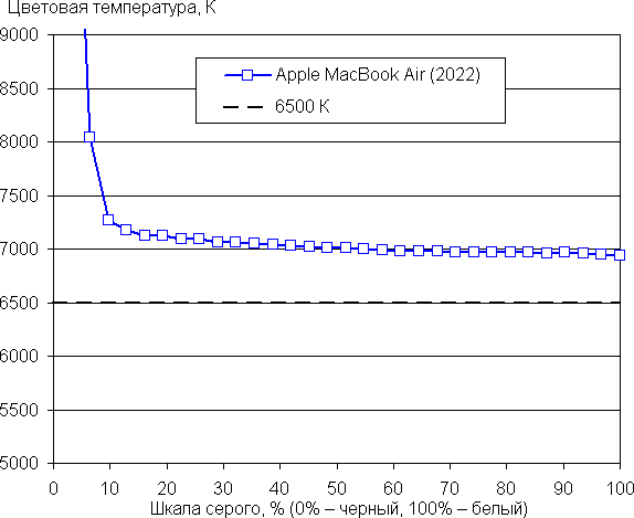 | True Tone включена, светодиодные светильники с холодным белым светом (6800 К) | 6650 | 8,6 |