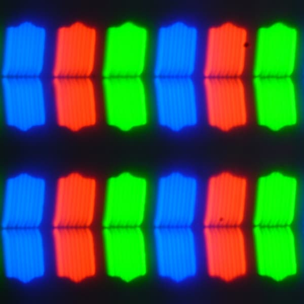 В данном экране используется матрица типа IPS. Микрофотографии демонстрируют типичную для IPS структуру субпикселей: