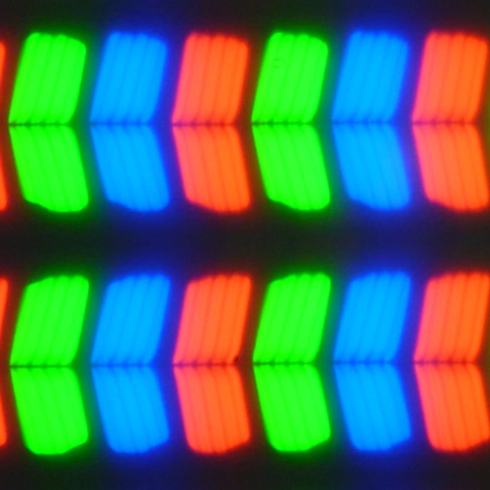 В данном MacBook Pro используется матрица типа IPS. Микрофотографии демонстрируют типичную для IPS структуру субпикселей: