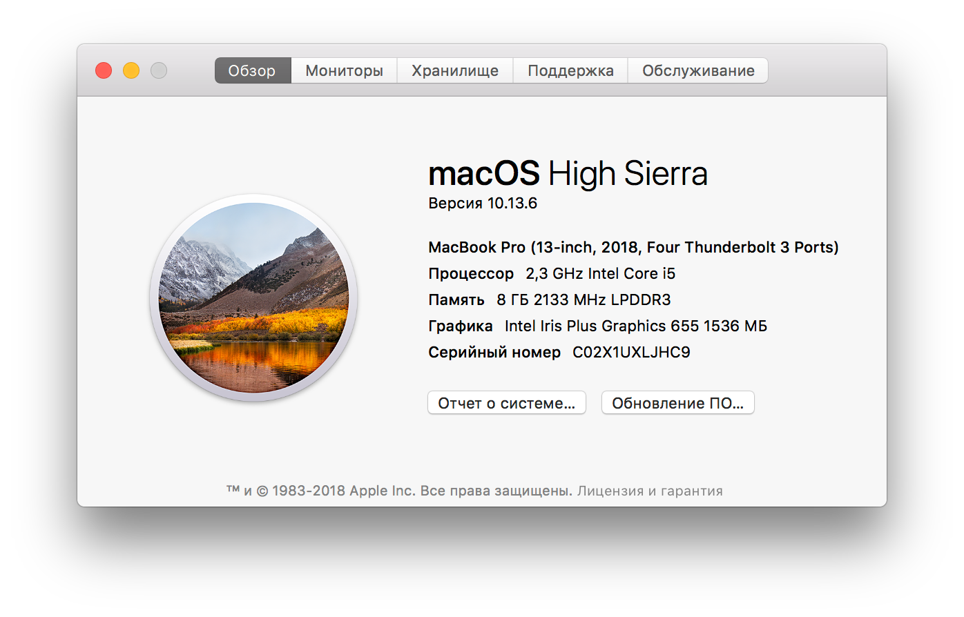 Вот подробный список технических характеристик всех возможных конфигураций MacBook Pro 13″ 2018 года. Отличающиеся характеристики тестовой модели отмечены жирным шрифтом.