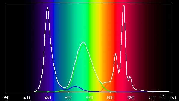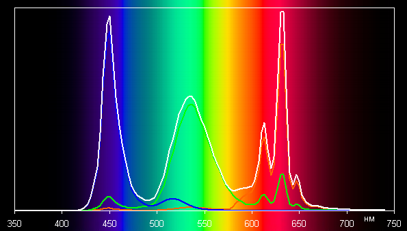 Спектры показывают, что программная коррекция в нужной степени подмешивает основные цвета друг к другу: