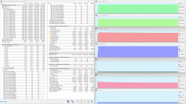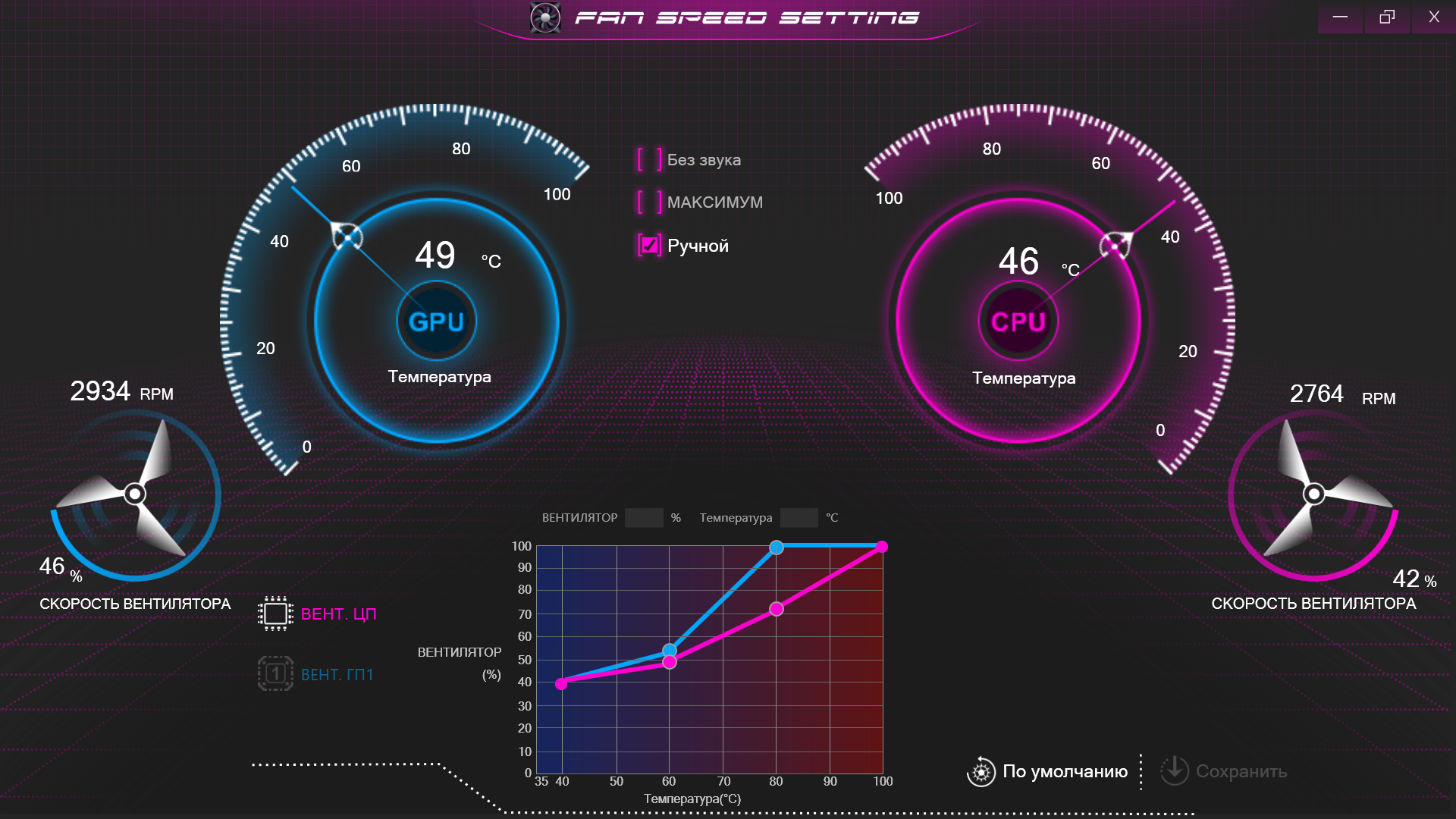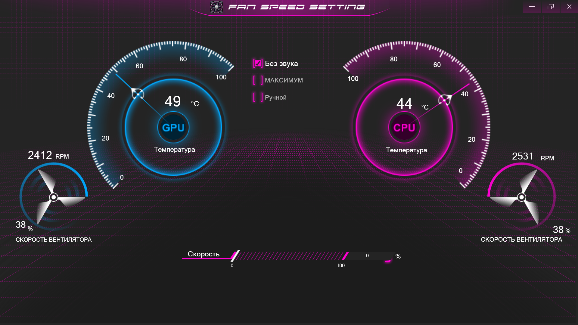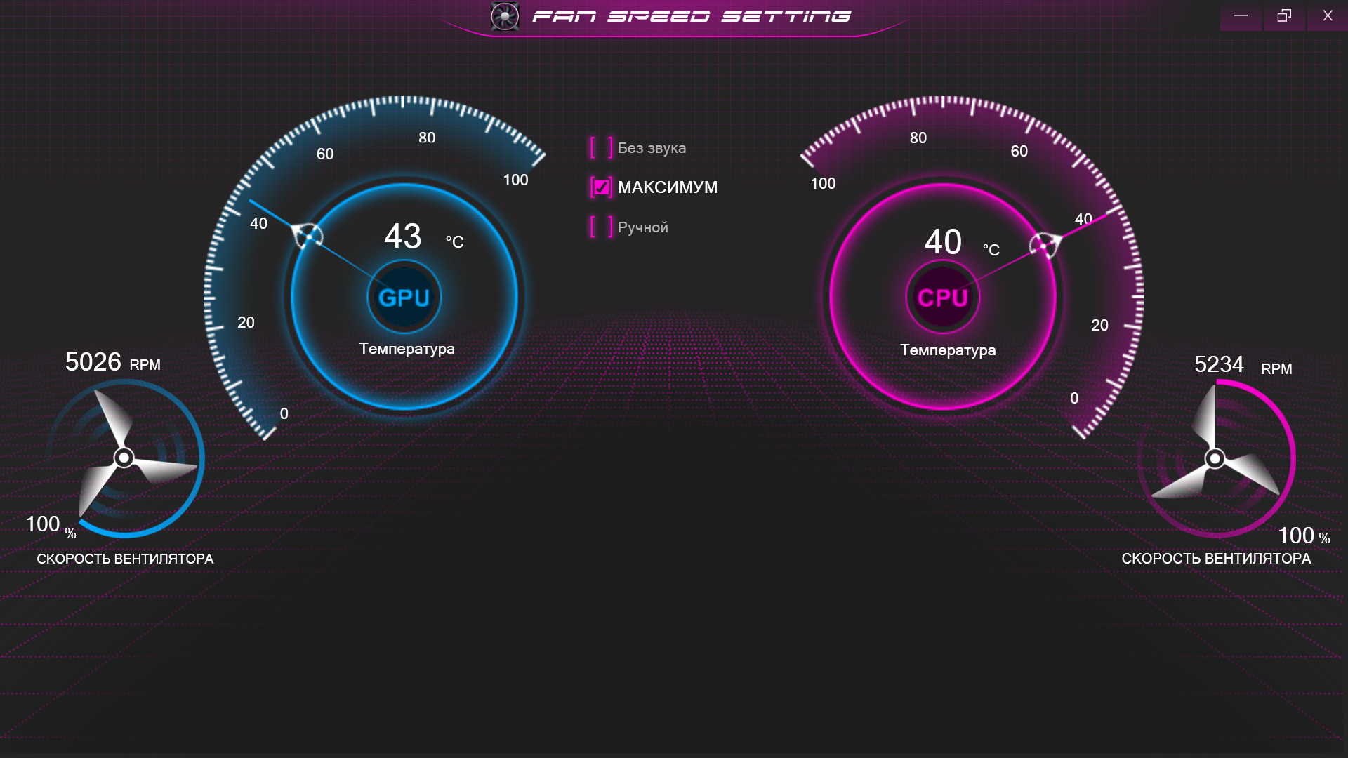 Система охлаждения Ardor Gaming Neo G17 типична для игрового ноутбука и содержит в своем составе привычные элементы: два кулера (по одному для CPU и GPU) с двумя радиаторами у каждого (задним и боковым) плюс 7 тепловых трубок. Теплотрубка, общая для обоих вычислителей, связывает их в единый контур, поэтому CPU и GPU до известной степени нагреваются один от другого, и работа вентиляторов зависит от степени разогрева обоих.