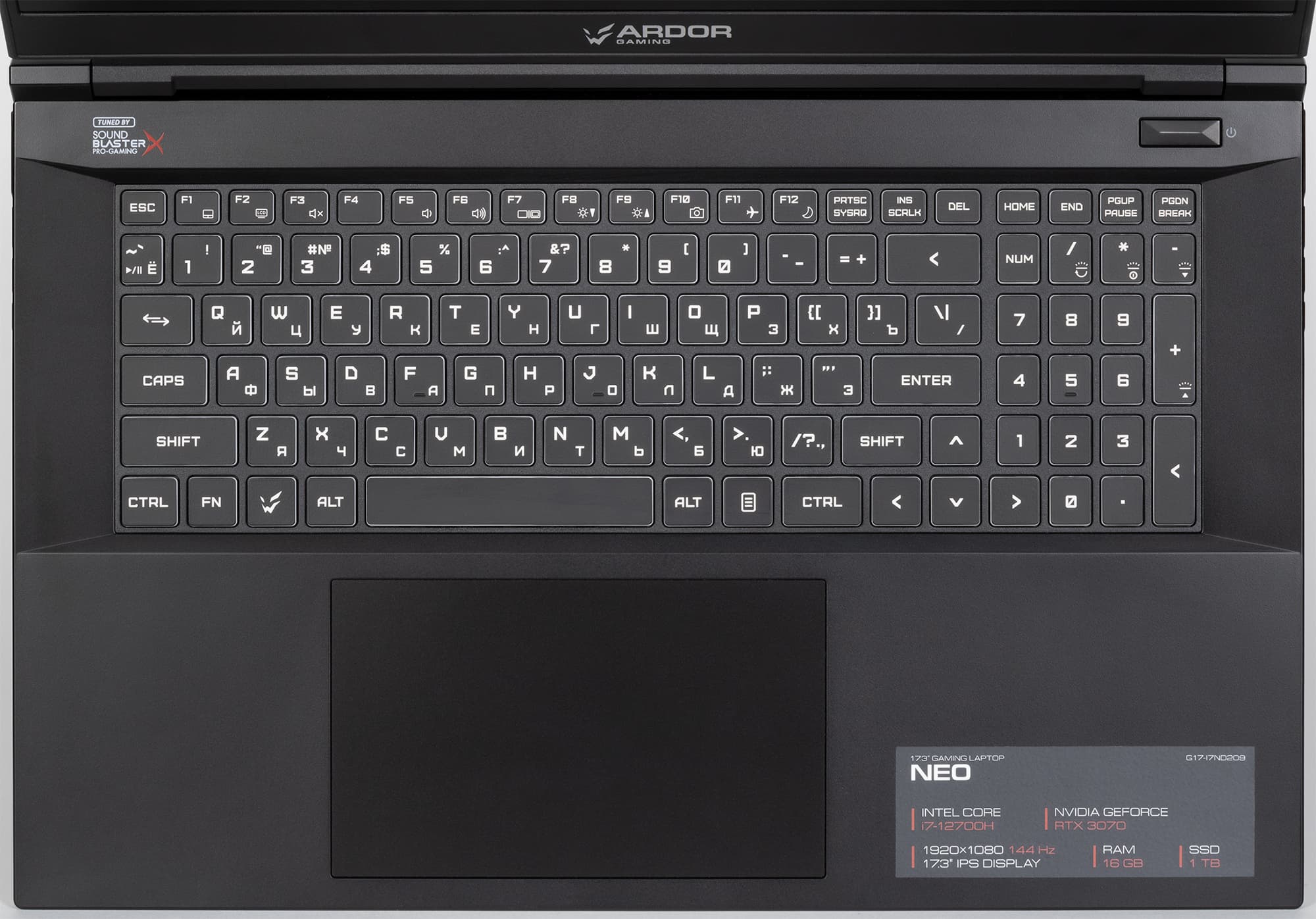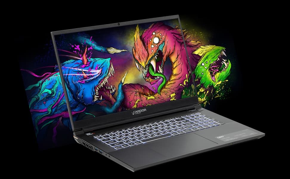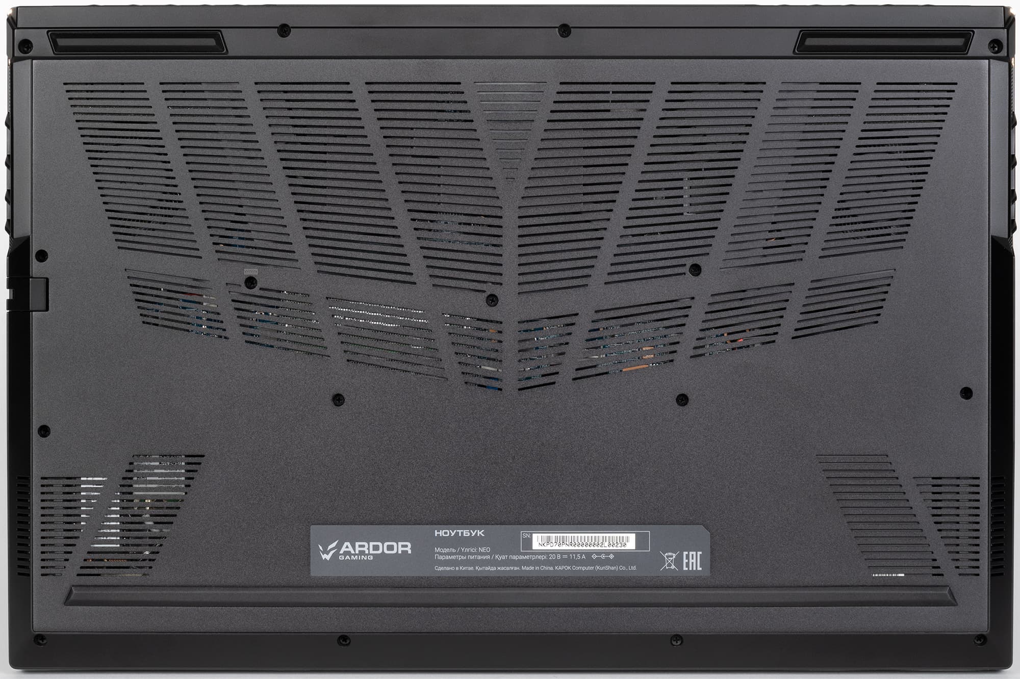В переводе с английского ardor означает пыл, задор. Вероятно, именно такой составляющей ожидали создатели в мотивации игроманов к покупке. В интернет-каталоге представлено пять разновидностей этих машин с экранами 17,3 дюйма по диагонали. Различия между ними состоят в разрешении дисплеев (1920×1080 или 2560×1440), моделях центрального процессора (Intel Core i5-1500H или Core i7-12700H) и видеокарты (Nvidia GeForce RTX 3050, 3060 или 3070 Laptop), вместимости системного накопителя (512 ГБ или 1 ТБ) и, естественно, емкости аккумуляторов. Мы займемся испытаниями очень привлекательной модели Ardor Gaming Neo G17-I7ND209, которой не хватает до самой топовой конфигурации лишь разрешения экрана Quad HD.