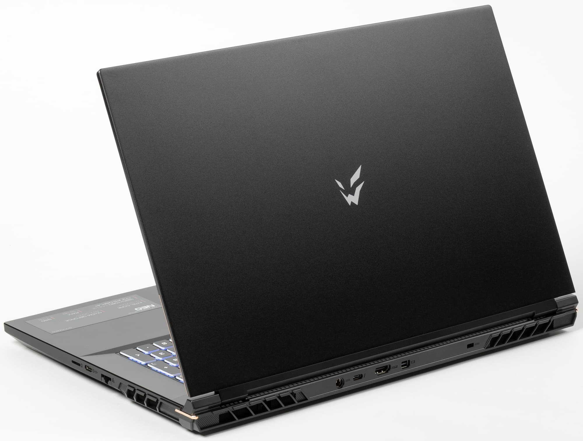 Еще один бренд, еще один шаг к диверсификации импорта с переориентацией с Запада на Восток. По нашему мнению, вариант удачный. Основа конфигурации привычная, «зелено-голубая» (Nvidia+Intel), видеокарта субтоповая, GeForce RTX 3070 Laptop с 8 ГБ GDDR6. Экран большой, 17,3 дюйма по диагонали, разрешение стандартное, Full HD. Яркости недостаточно для игры на открытом воздухе, но она все же выше, чем у конкурентов. Оперативной памяти (16 ГБ) вполне хватит для любой игры, а при желании можно довести ее объем вплоть до максимума 64 ГБ. Сетевые возможности обеспечивают гигабитный адаптер Ethernet и беспроводной Wi-Fi 6 (802.11ax), причем по скоростям подключения последний опережает собственный аналог в составе одной из соперничающих моделей ноутбуков. Процессор Intel Core i7-12700H не в состоянии на равных соревноваться с Intel Core i9-12900H, но при испытаниях в реальных приложениях обеспечивает вдвое большую сумму баллов, чем референсный десктоп, а SSD-накопитель по проворству опережает системные накопители конкурентов. Кстати, можно установить еще и второе NVMe-устройство в свободный слот М.2. Во всех пятнадцати играх нашего стандартного испытательного набора обеспечена отличная играбельность на уровне или с превышением стандарта 60/30 средних/минимальных fps.
