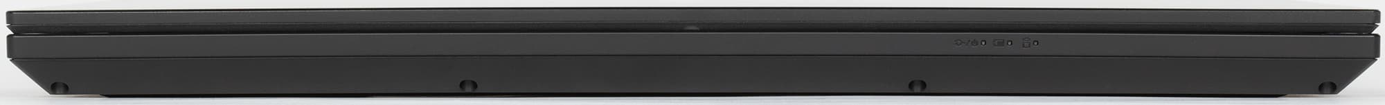Ноутбук обладает большим экраном (17,3 дюйма по диагонали). О компактности говорить не приходится, но достоинства машины связаны как раз с большой плоскостью дисплея. Согласно нашим измерениям, толщина машины с опорами составляет спереди 27 мм, сзади — 31 мм (без опор толщина везде 25 мм).
