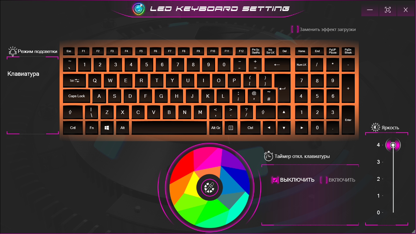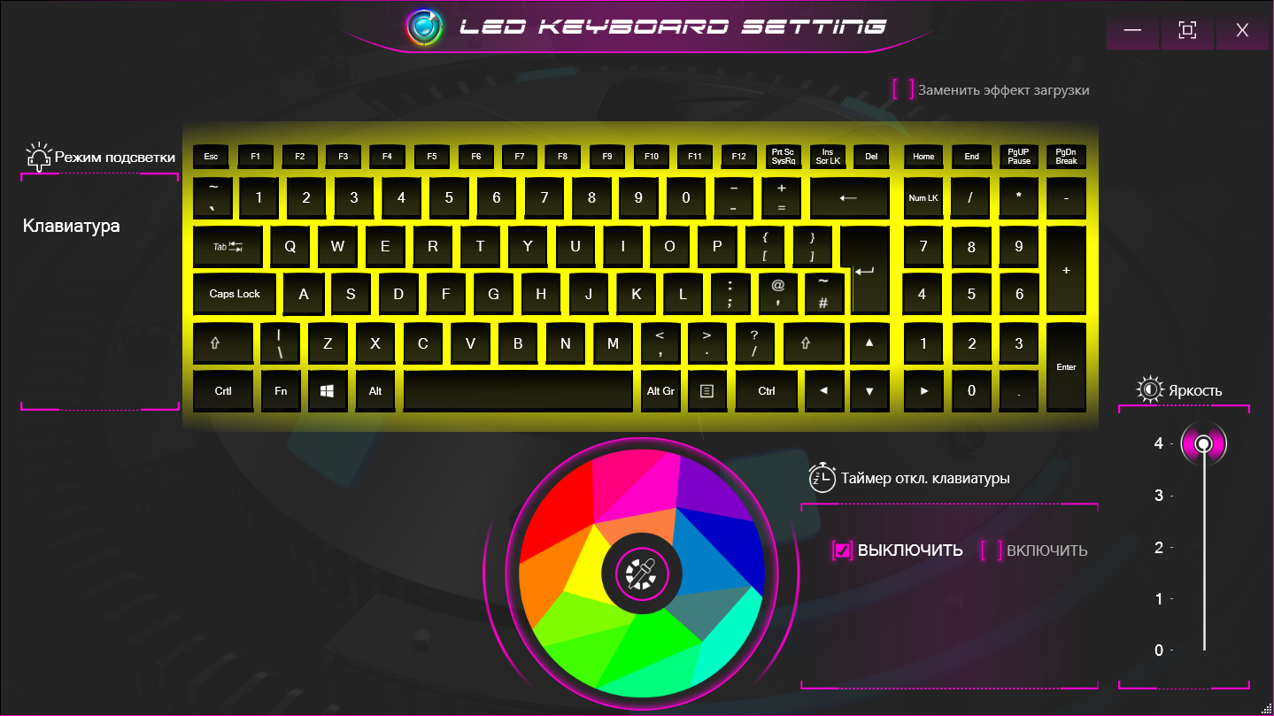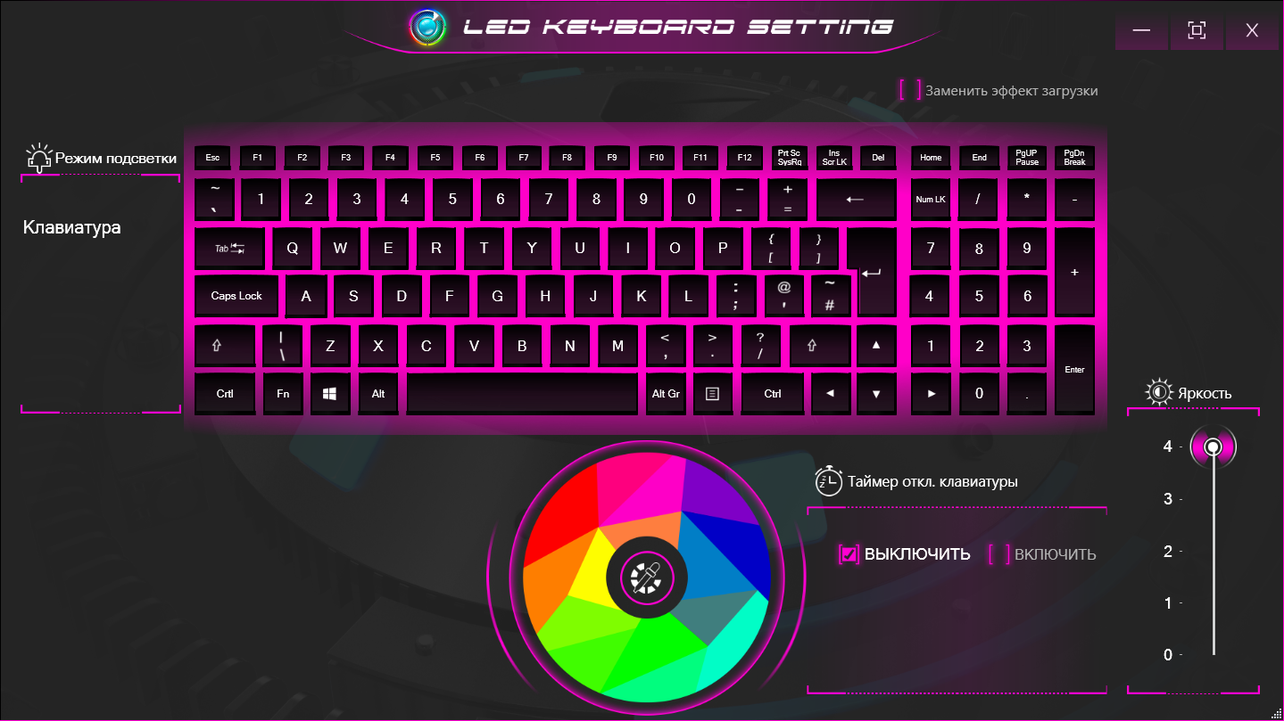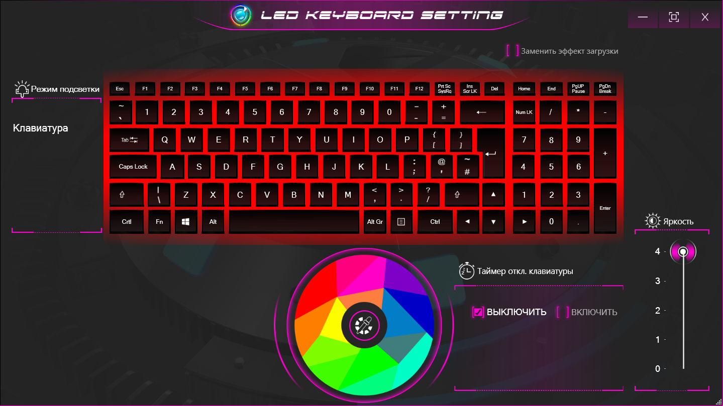 В разделе LED Keyboard можно изменять цвет подсветки клавиатуры.