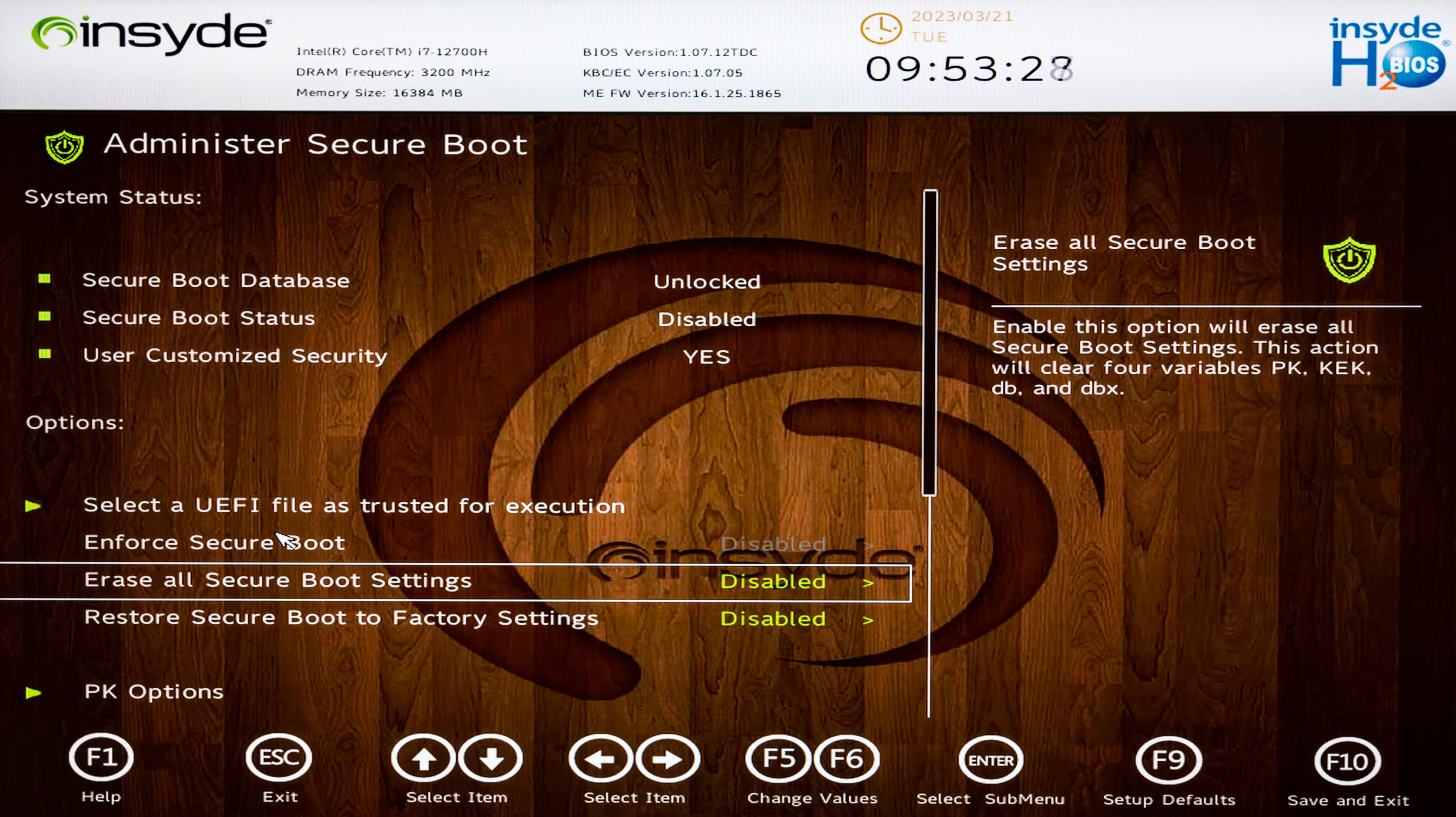 Administer Secure Boot дает возможность установить приоритет безопасной загрузки.