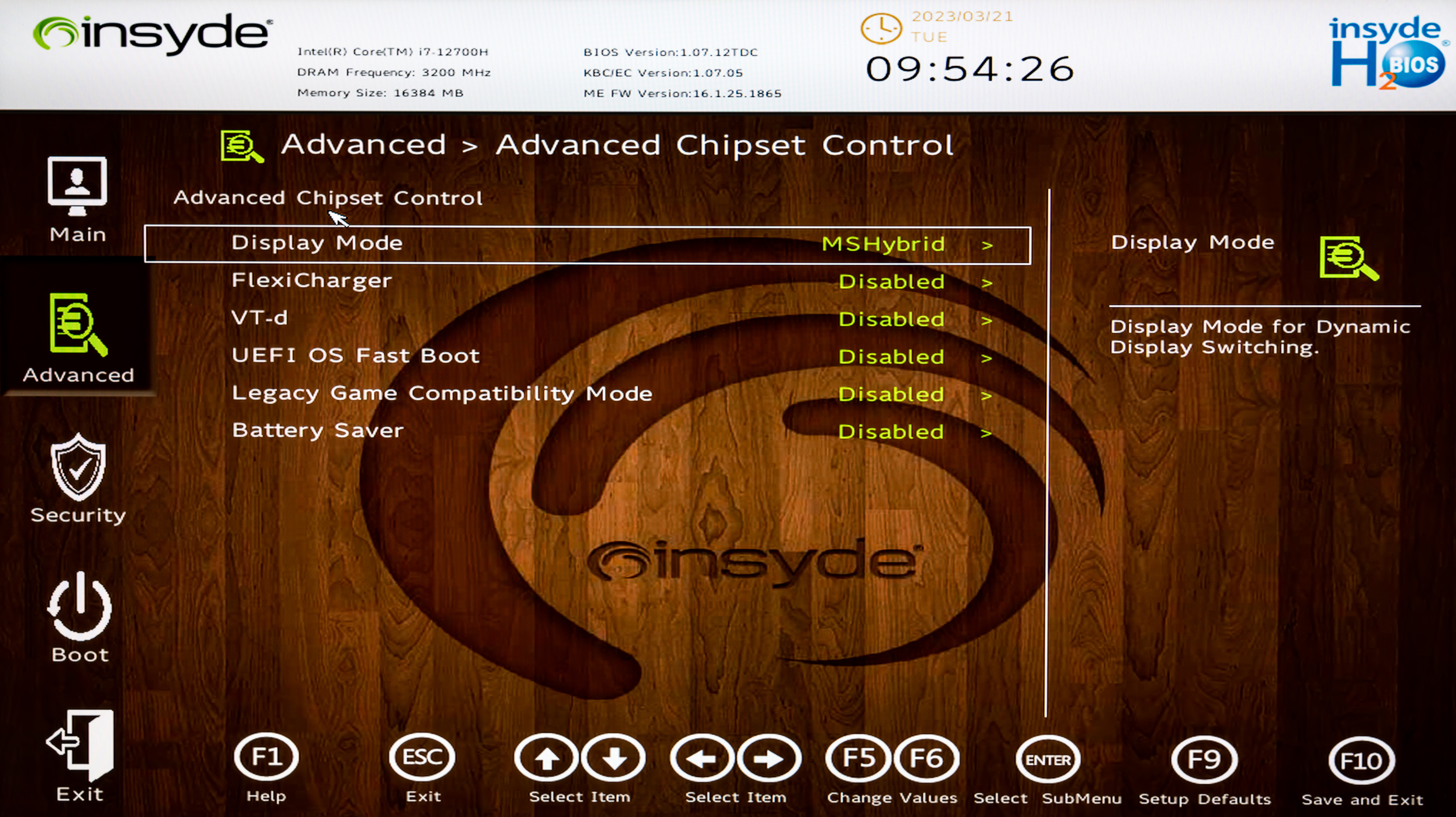 В опции Display Mode предусмотрен выбор режима работы графики. По умолчанию (верхний левый скриншот) указан гибридный (MSHybrid), при котором система в зависимости от характера и степени нагрузки переключается между дискретными и интегрированным видеоадаптерами. Для достижения максимальной производительности в играх можно отключить интегрированное видео и использовать только видеокарту (режим dGPU).
