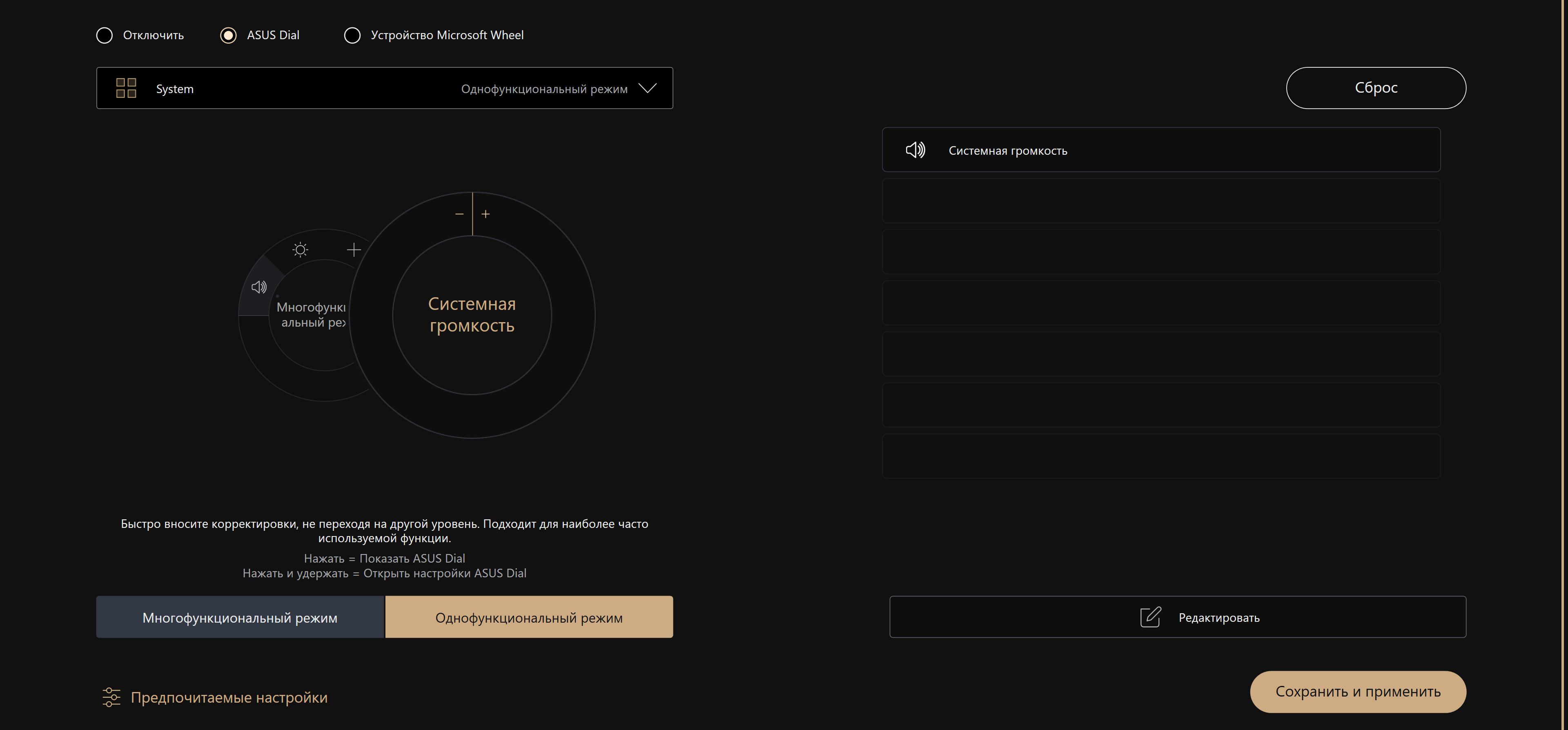 Для настройки виртуального колеса управления нужно воспользоваться утилитой ProArt Creator Hub.