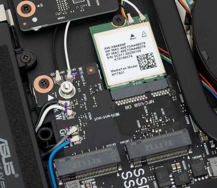 Под первым (занятым) слотом для SSD-накопителя находится адаптер беспроводной связи MediaTek MT7921 (Wi-Fi 6 + Bluetooth 5.2).