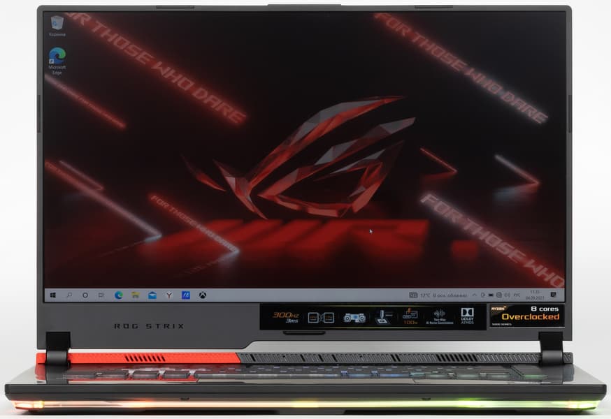 Экран на основе IPS-матрицы с высокой частотой обновления (300 Гц) и малым временем отклика (3 мс) обладает высокими яркостью и контрастностью, а также полноценным охватом цветового пространства sRGB. Всё это позволяет расширить модель использования ноутбука за пределы диапазона чисто игровых задач и добавить к ней обработку изображений и видео, трехмерную анимацию, работы по автоматизированному проектированию и прочую креативную профессиональную деятельность. Несколько нетипично, Asus ROG Strix G15 Advantage Edition G513QY превосходит большинство игровых ноутбуков и по автономности (хотя это вряд ли будет определяющим фактором при выборе).