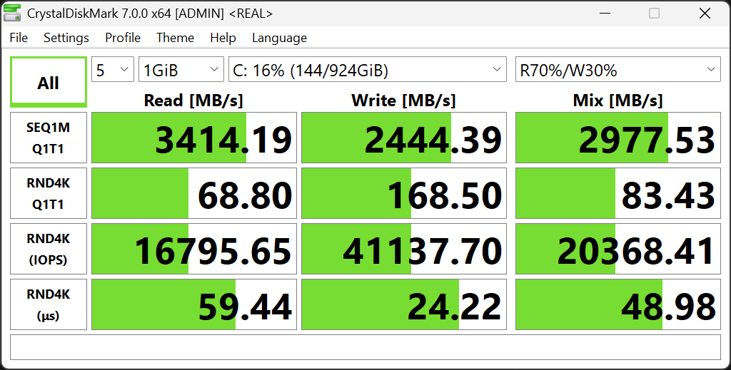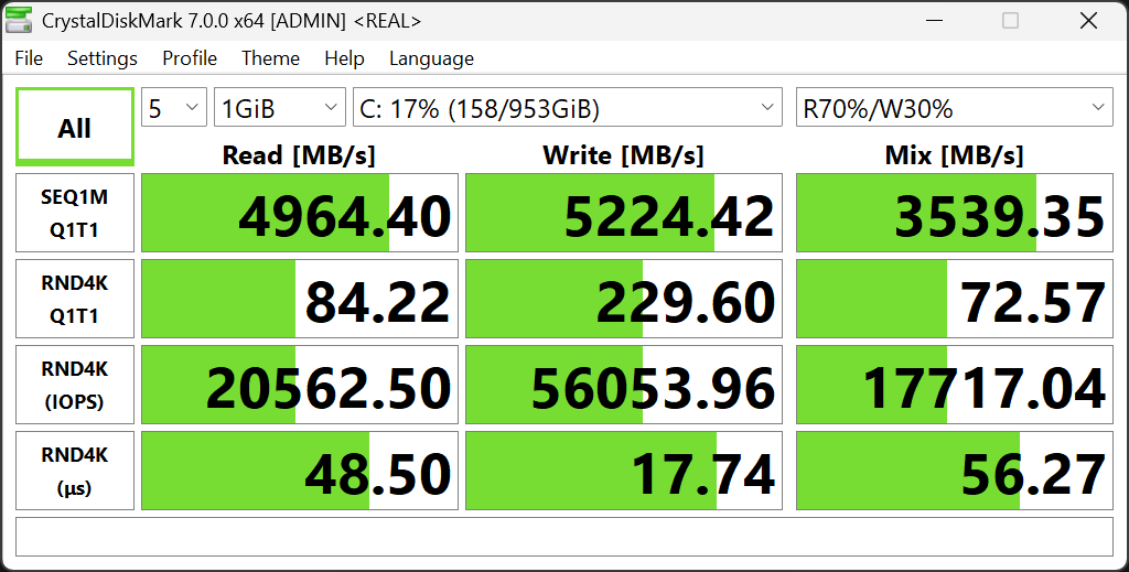Системным накопителем служит терабайтный NVMe SSD WD SN5000S (интерфейс PCIe 4.0 ×4).