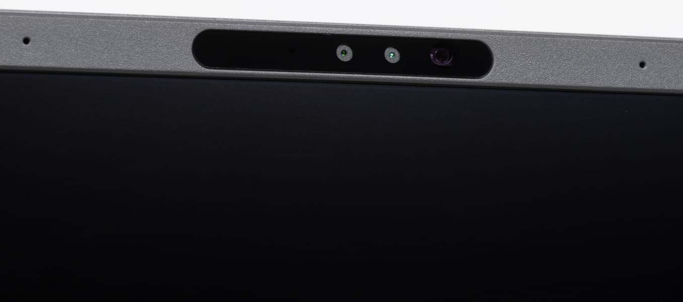 В центральной части верхней рамки установлена миниатюрная веб-камера с разрешением видео 1920×1080 с двумя микрофонами и ИК-датчиком для поддержки Windows Hello. Механической шторки нет.
