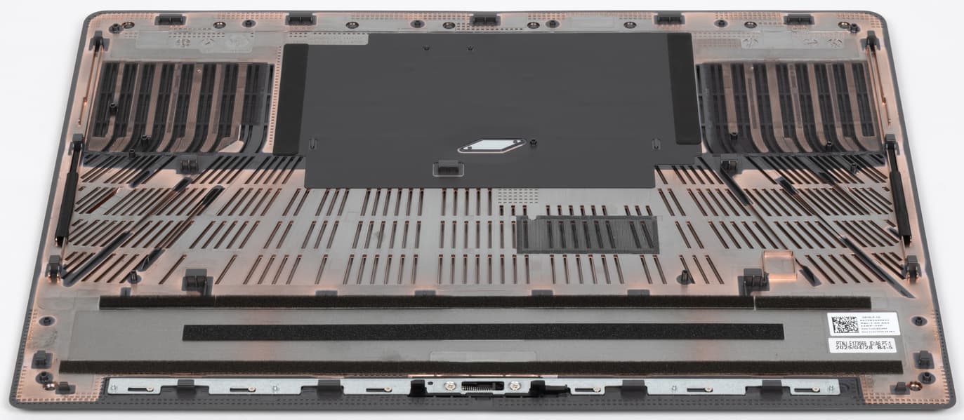 Рисунок решеток на днище весьма причудлив. Входные отверстия для воздуха располагаются над кулерами и другими разогревающимися при работе элементами аппаратного оснащения. Две опоры представляют собой линейки из резины. В передней имеется вырез, внутри которого помещается замок днища. Крепежных винтов нет ни одного. Для любителей копаться во внутренностях машины это существенное достоинство: доступ к внутренностям можно получить всего за несколько секунд.